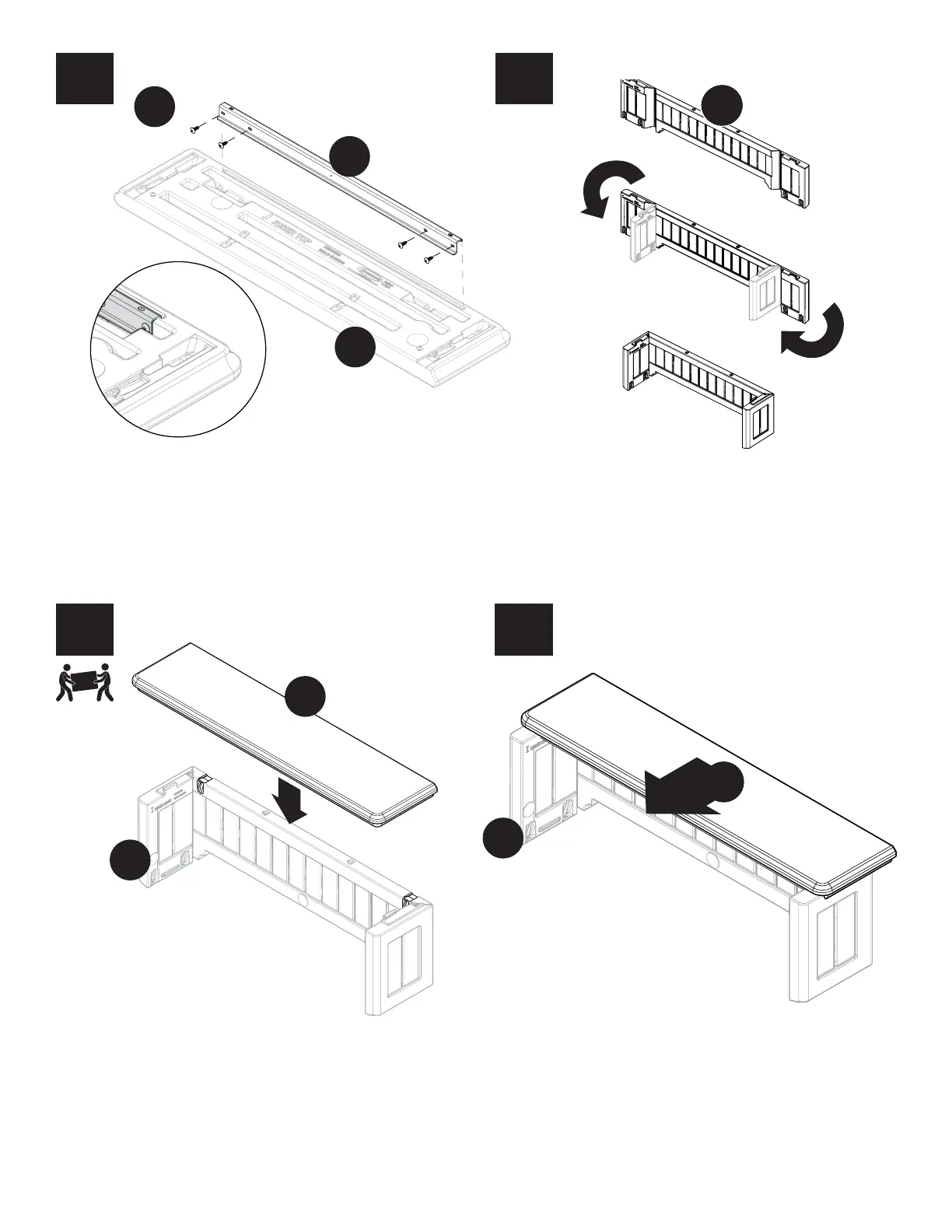 Aligning slots on underside of riser top panel (J) with tabs on riser back panel (I), lower riser top panel (J) onto riser back panel (I). Slide riser