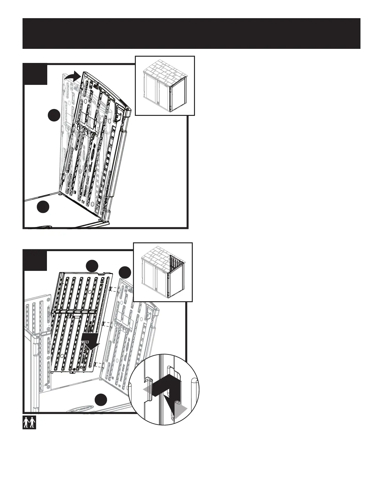 Assembly–Walls (continued) / Assemblage de la remise–Murs (suite) / Armado del