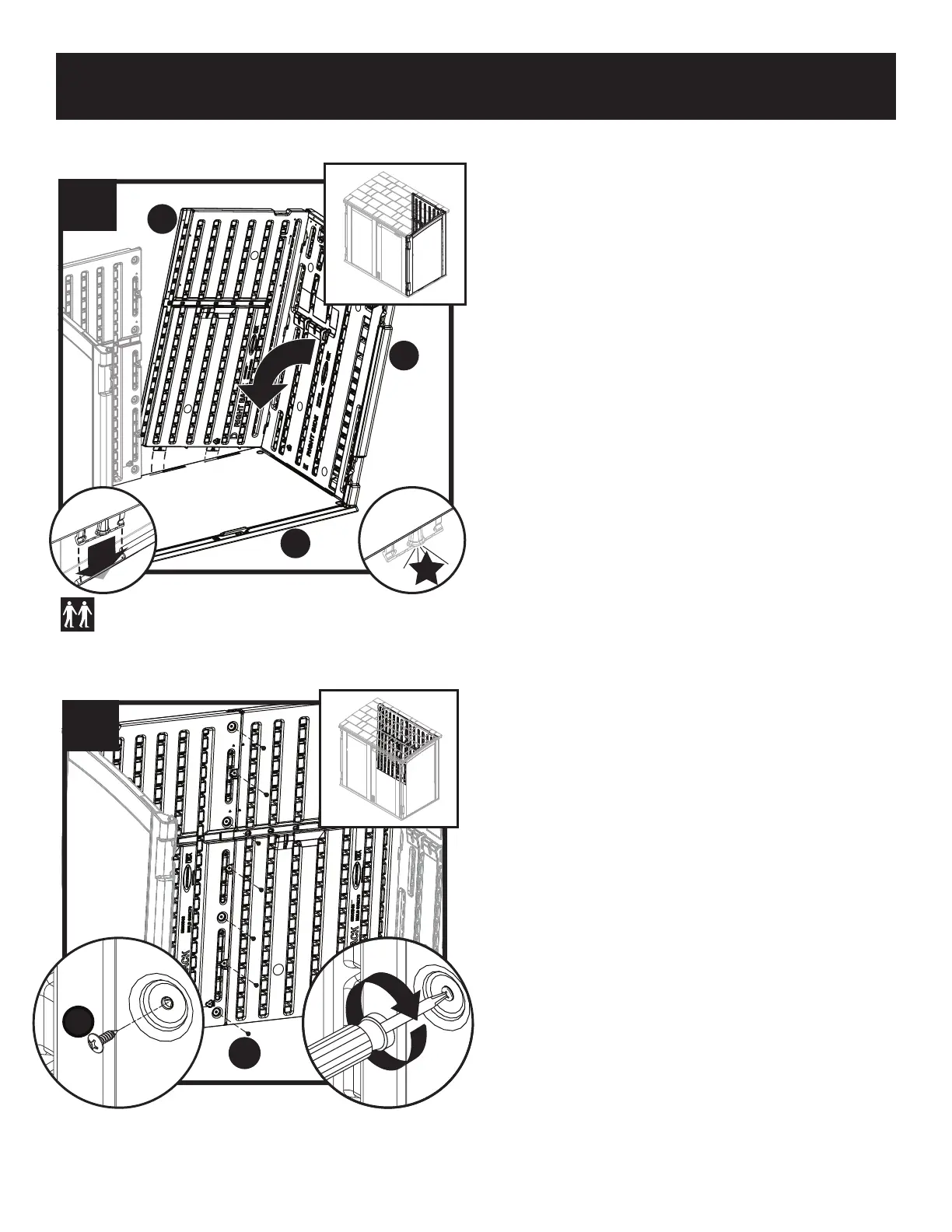 Assembly–Walls (continued) / Assemblage de la remise–Murs (suite) / Armado del