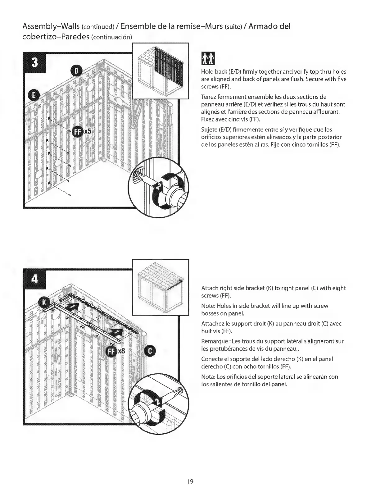 Suncast BMS4700 - Wall Assembly: Securing Back Panels and Side Brackets