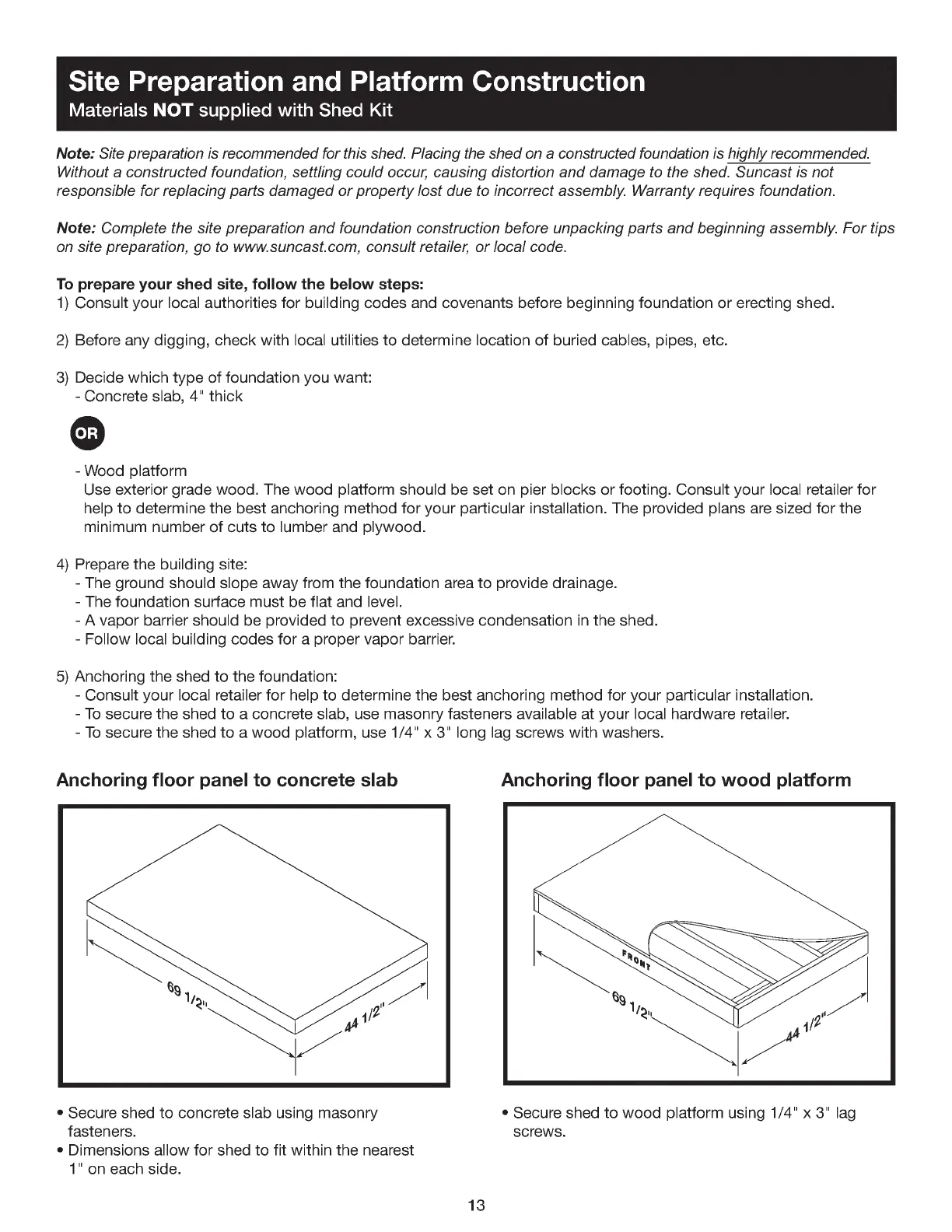 Suncast BMS4700X - Site Preparation and Platform Construction