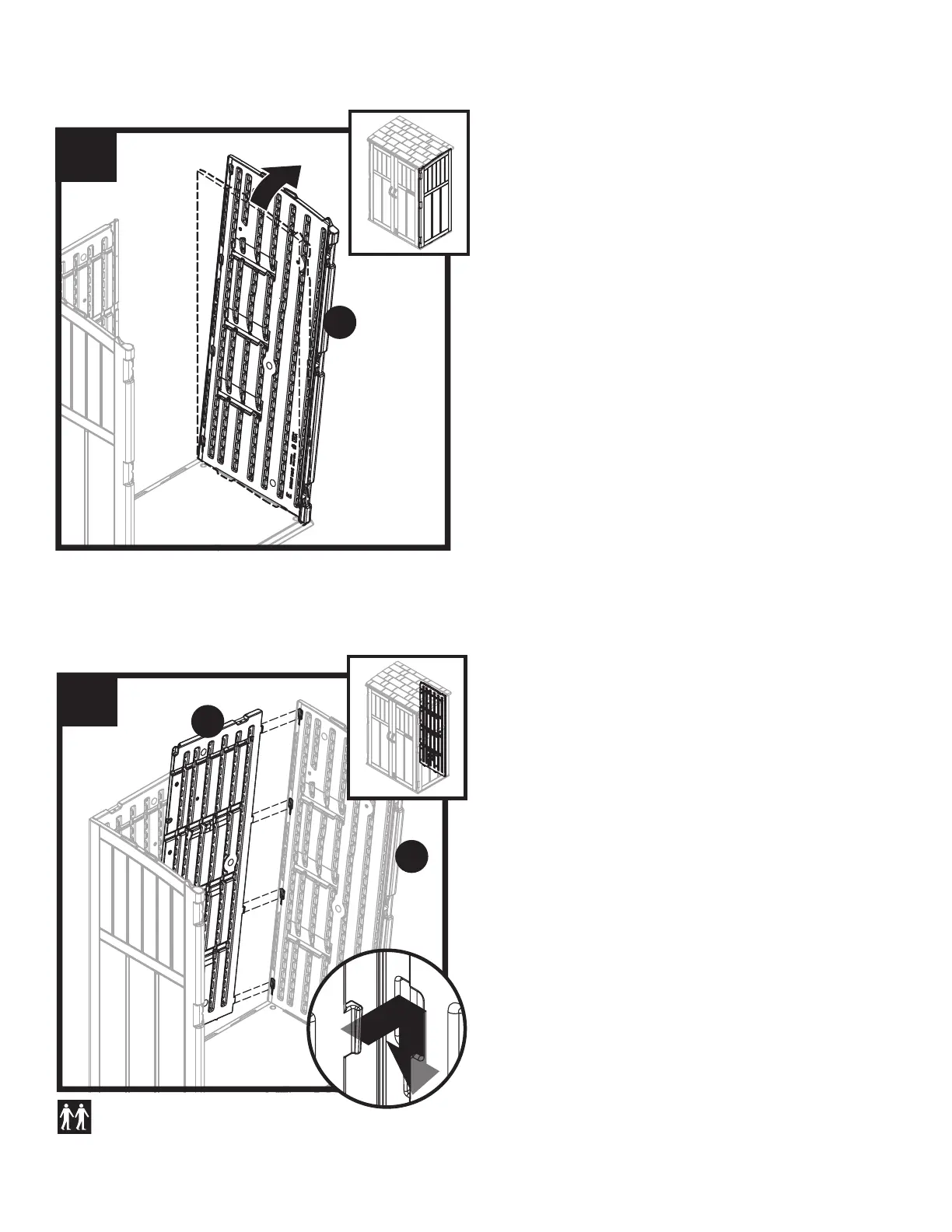 Assembly–Walls (continued) / Assemblage de la remise–Murs (suite) / Armado del