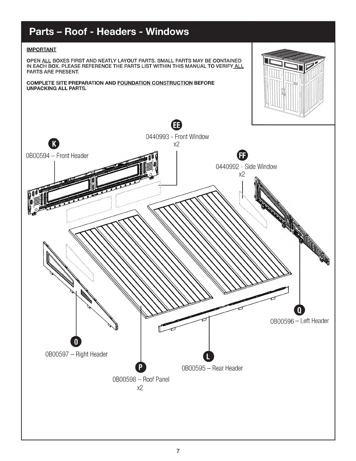 Suncast BMS6583 - Parts - Roof, Headers, and Windows