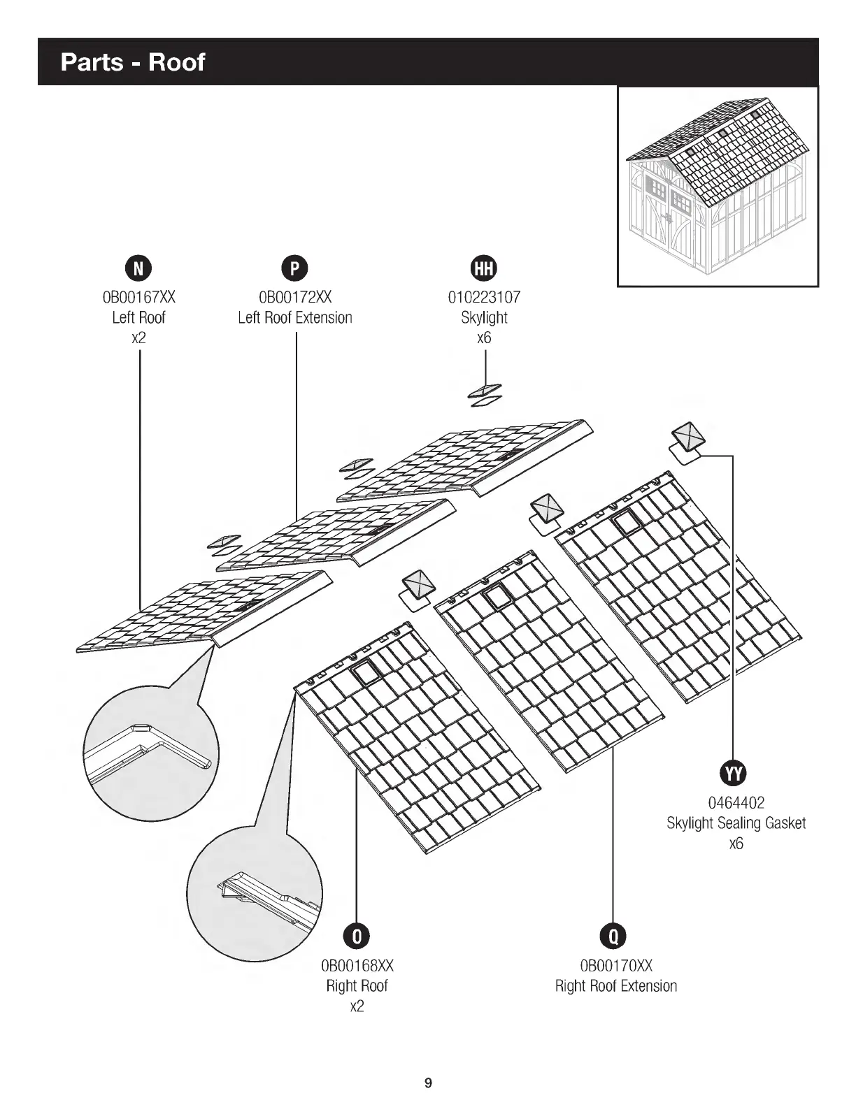 Suncast BMS8100 - Roof Components Identification