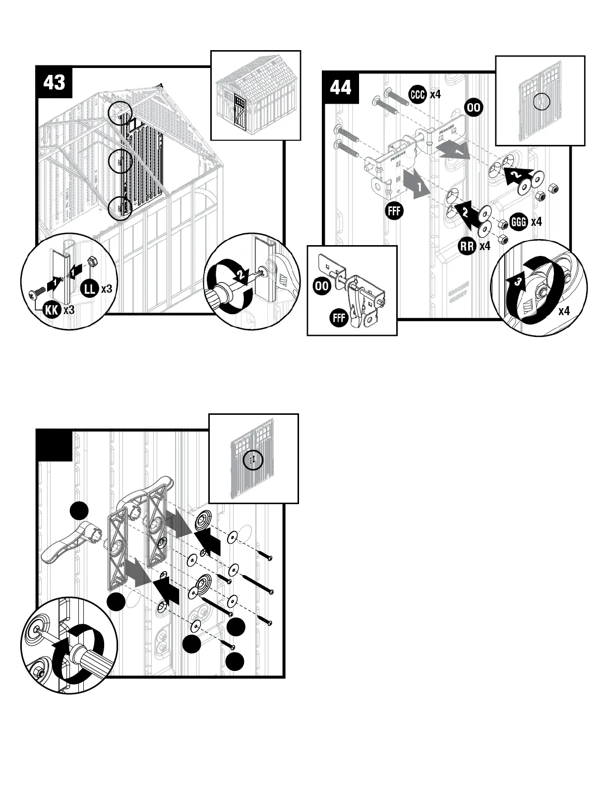 two locking nuts (GGG). Repeat for right latch plate (FFF).