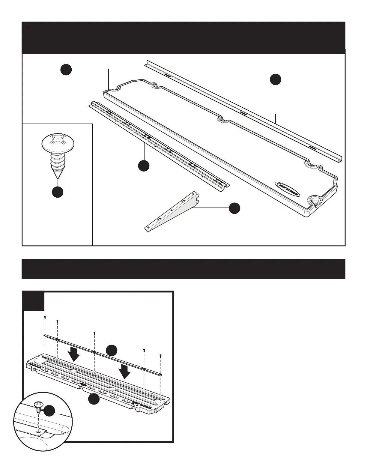 Fasten the L-bracket (B) to the shelf panel (A) with ve (5)