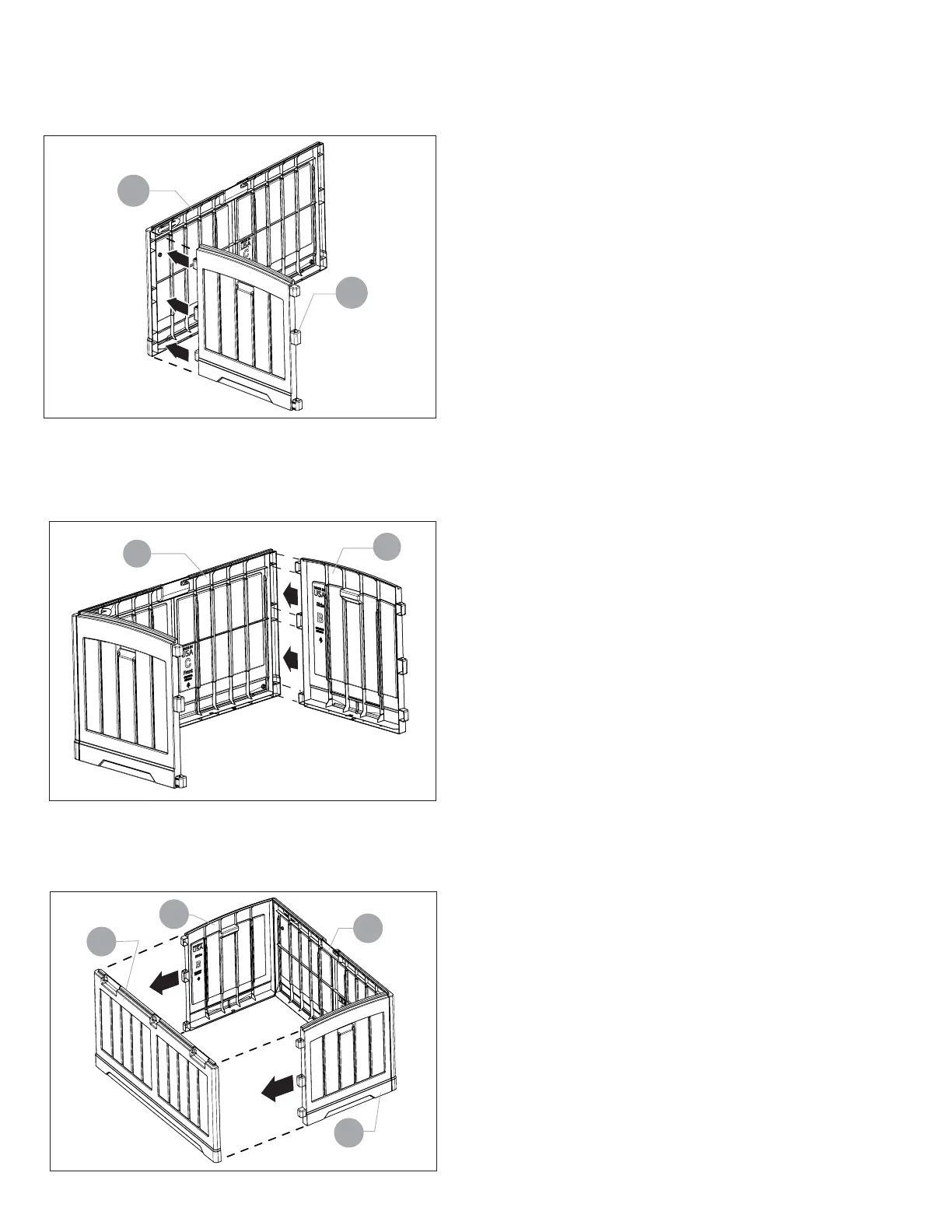 Inserte los extremos de los paneles laterales (B) en las ranuras