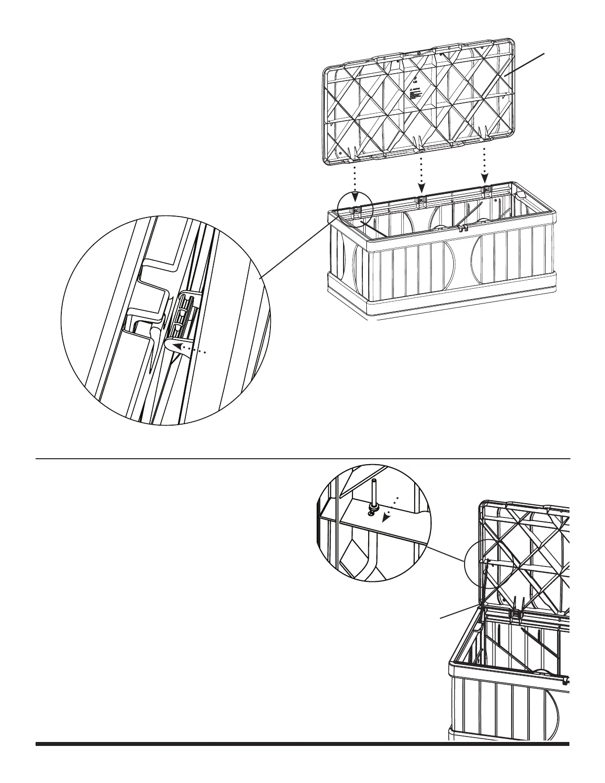 6. Hold Lid F in an open (vertical) position parallel with Back A,