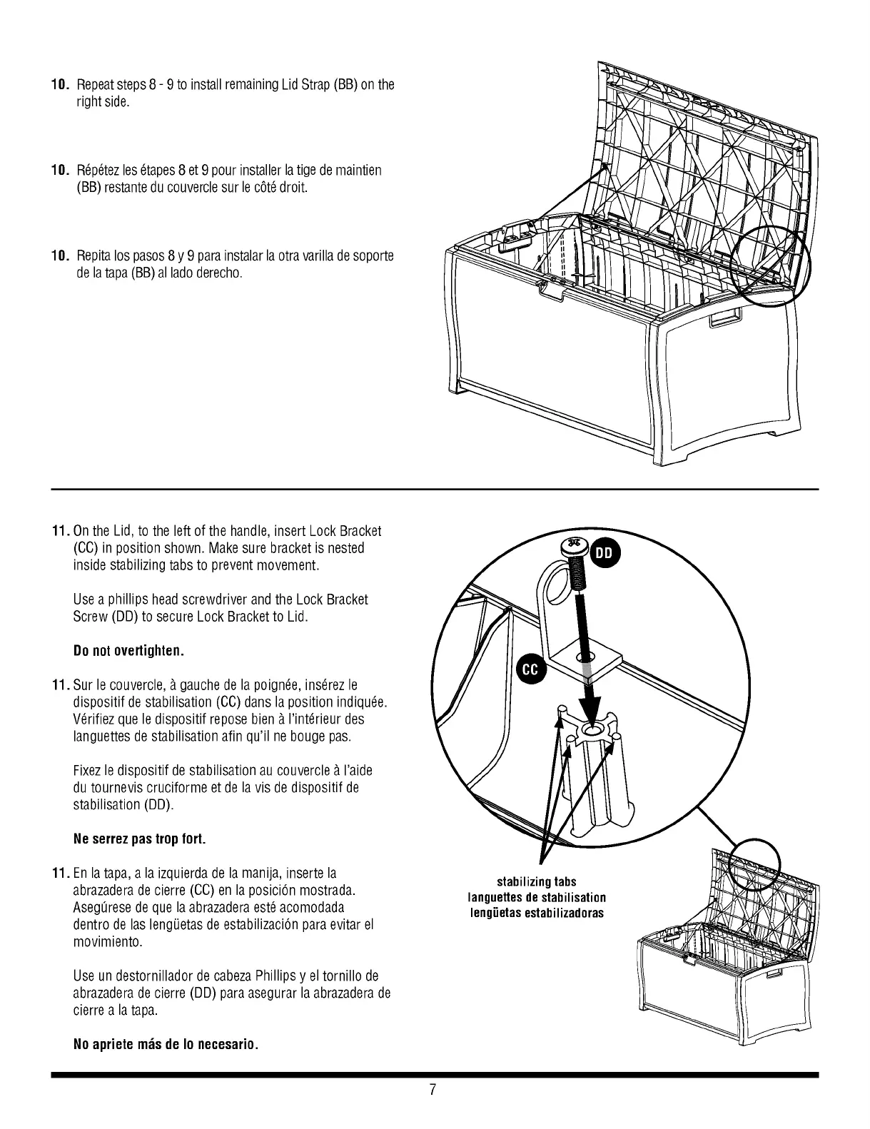 Suncast DBW7300 - Deck Box Assembly Step 10-11; Installing Remaining Lid Straps; Securing Lock Bracket