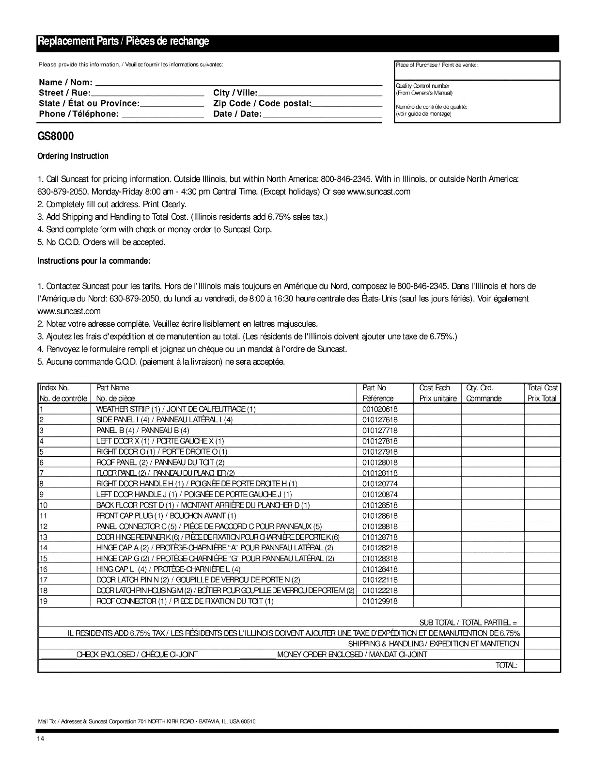 4. Renvoyezle formulaire rempli et joignez un cheque ou un mendat &l'ordre de Suncast.