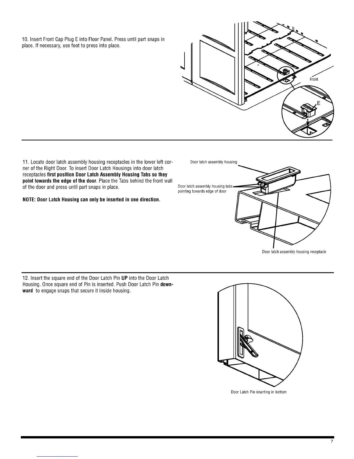 10. Insert Front Cap Plug E into Floor Panel. Press until part snaps in