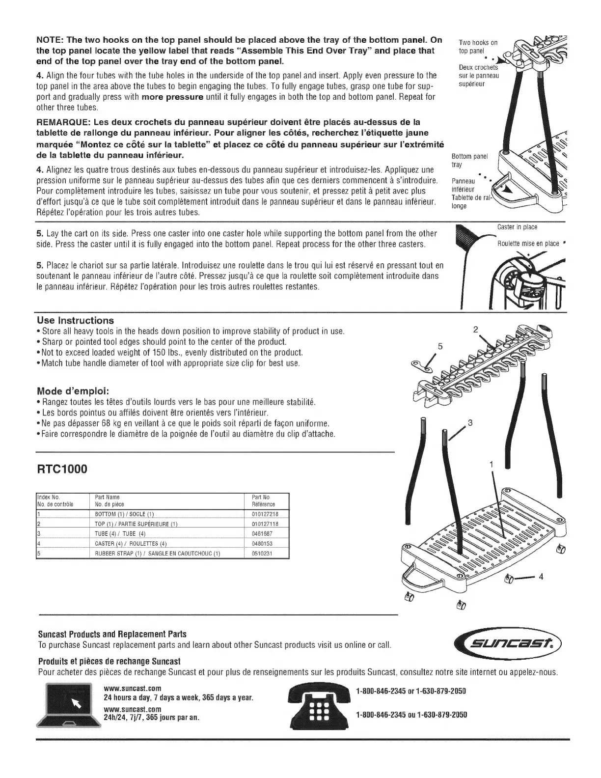 Suncast RTC1000 - Step 4: Attach Top Panel; Step 5: Install Casters; Use Instructions; Tool Storage Guidelines