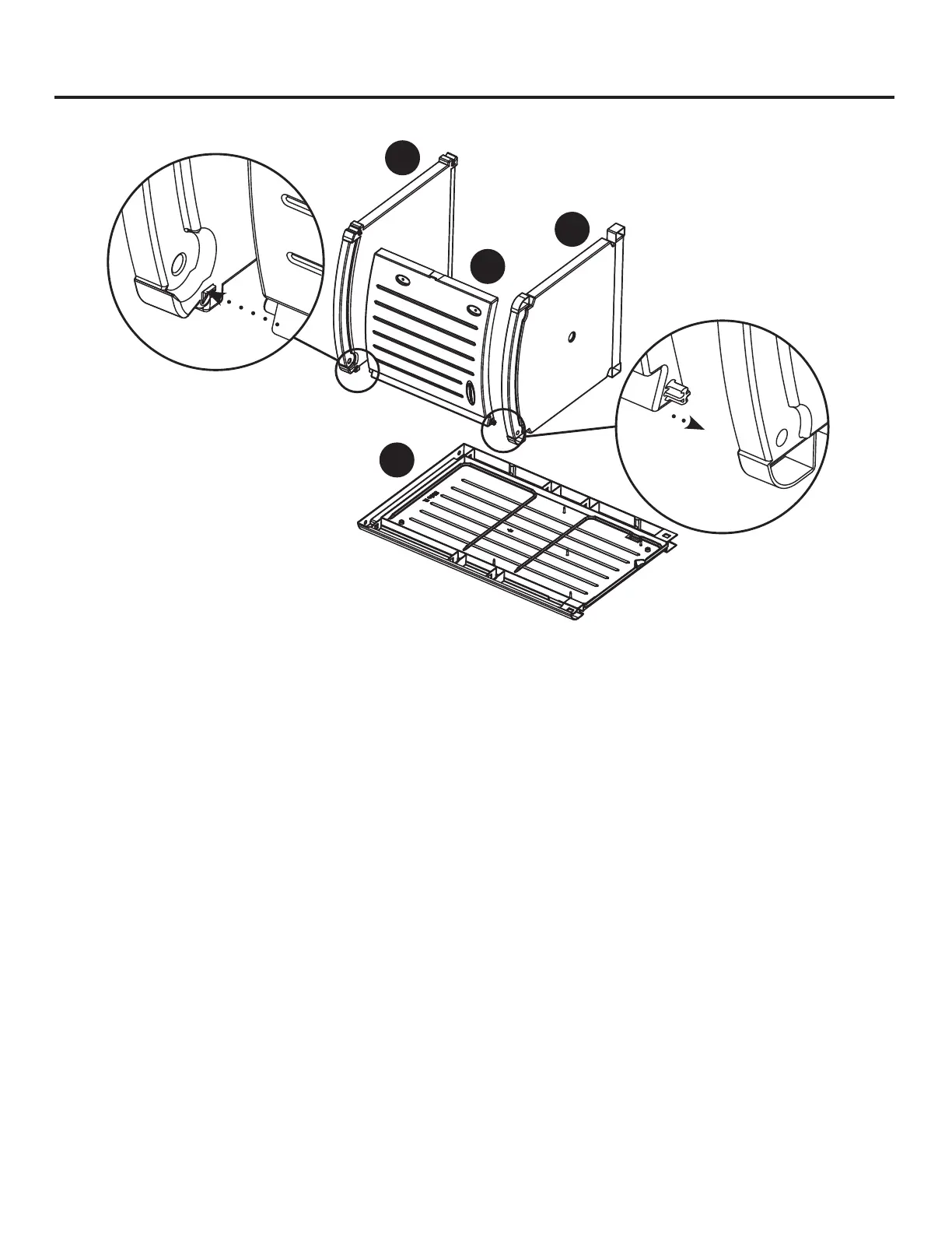 Puerta “B” en el receptáculo para poste de bisagra del Panel de Fondo (H), al tiempo que coloca el poste de bisagra de arriba de la Puerta “B”