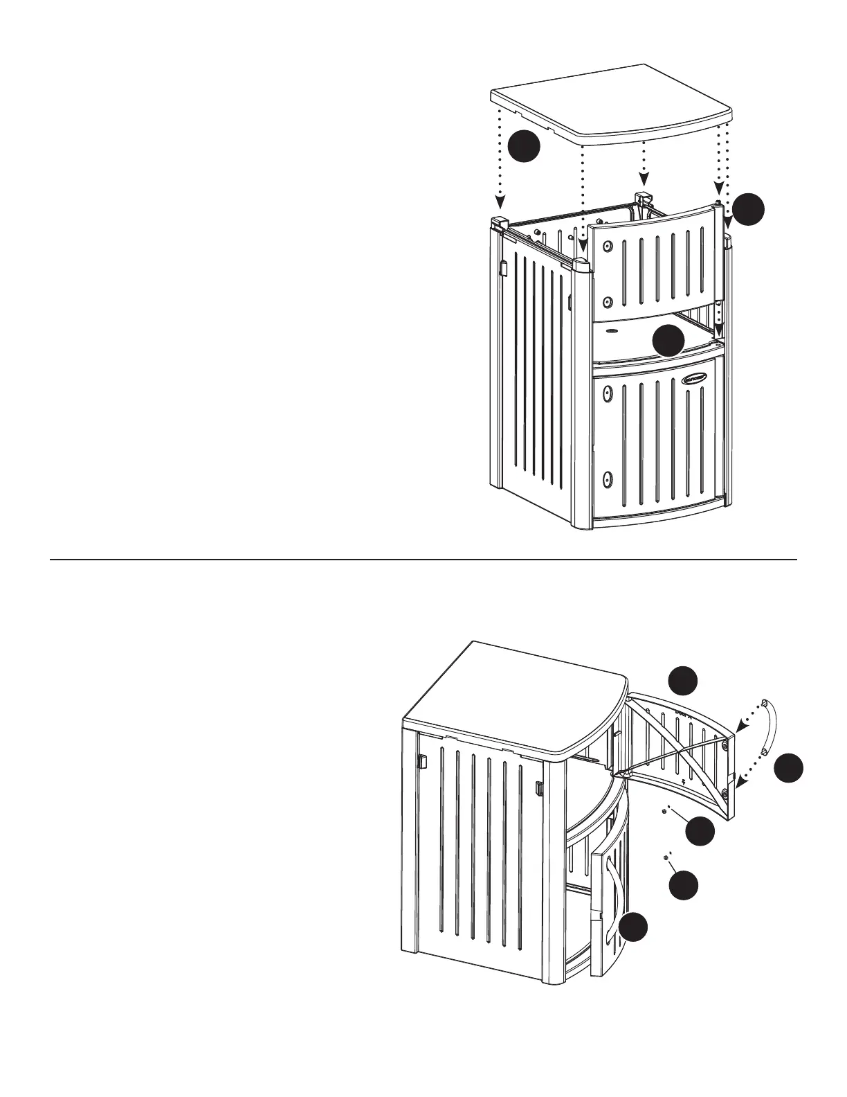 6. Place bottom hinge post of Door (A) into hinge post receptacle