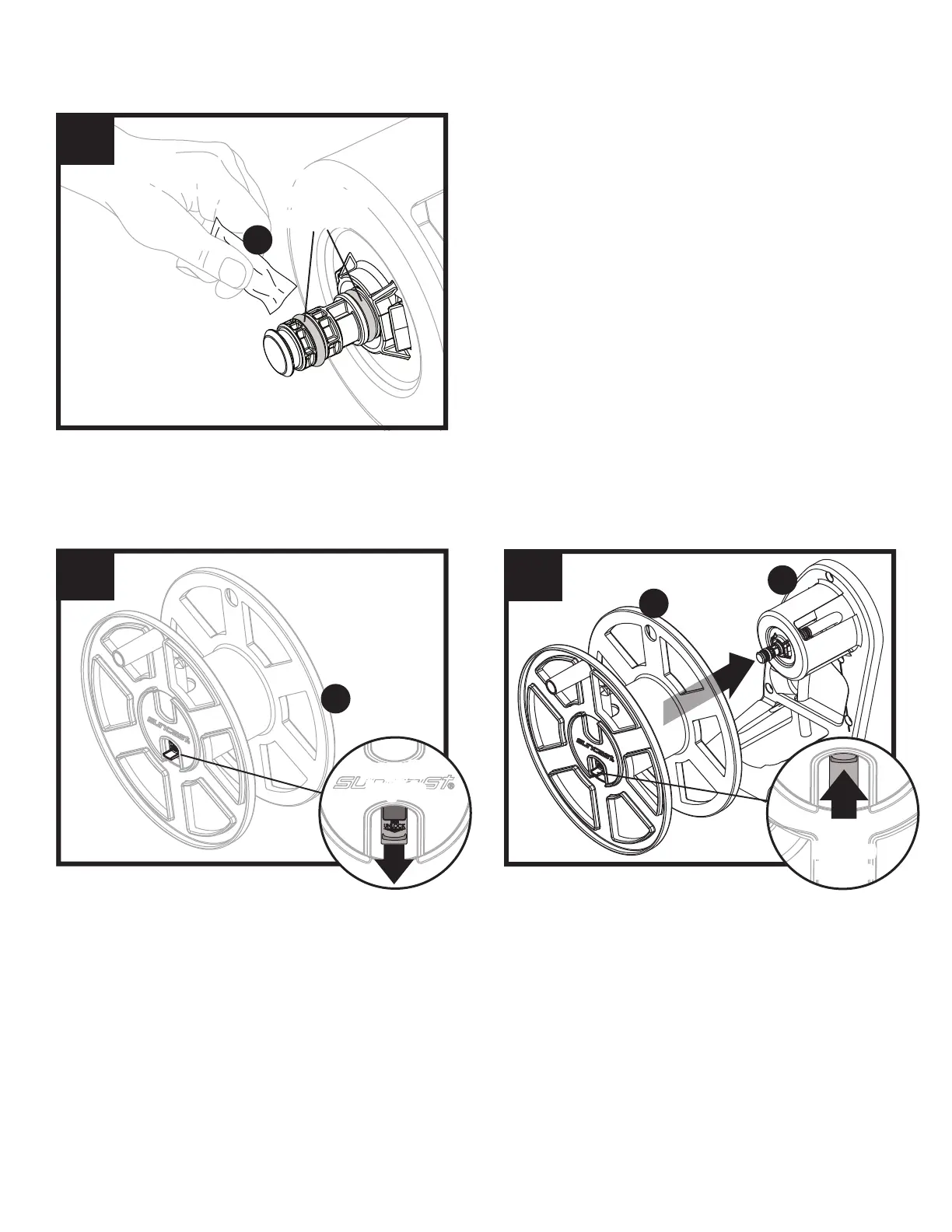 Install reel (G) over hose reel hub (A). Secure by sliding tab of