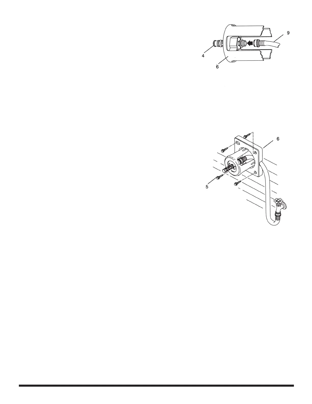 Assemble mounting hub to wall using four mounting screws (5), making sure that leader hose is
