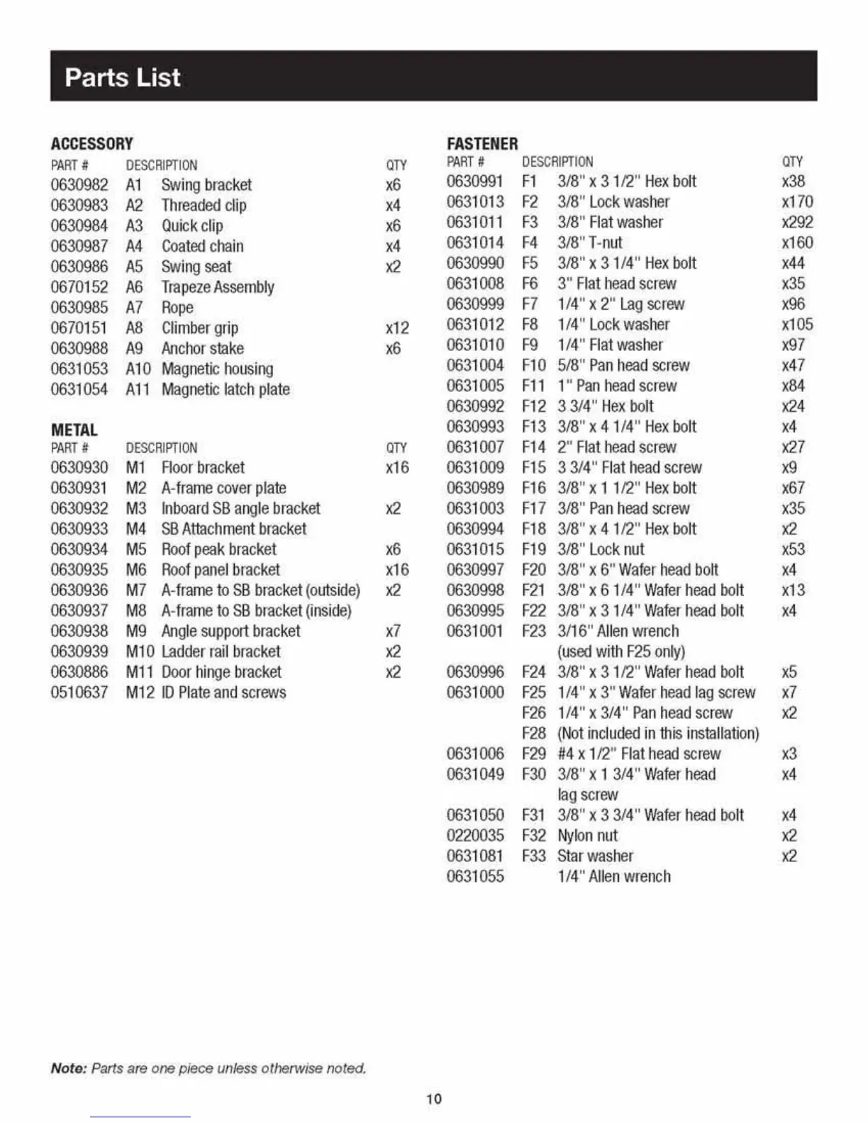 Parts List