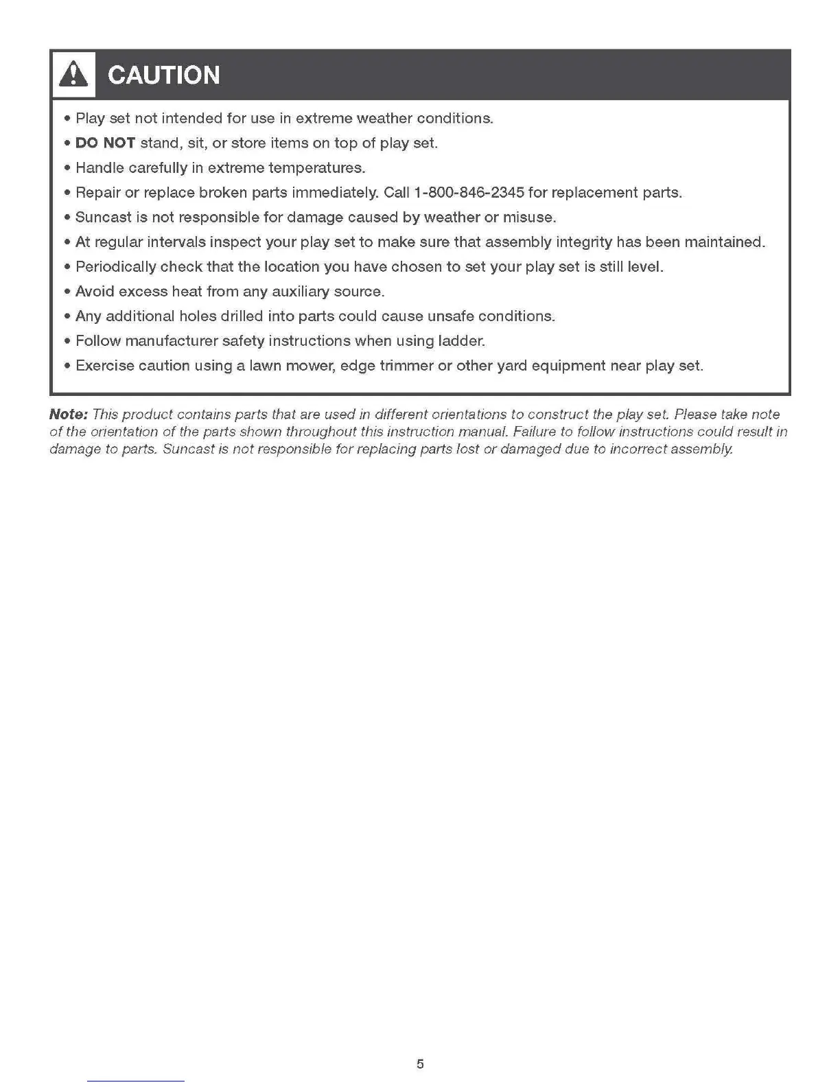 damage to parts. Suncast