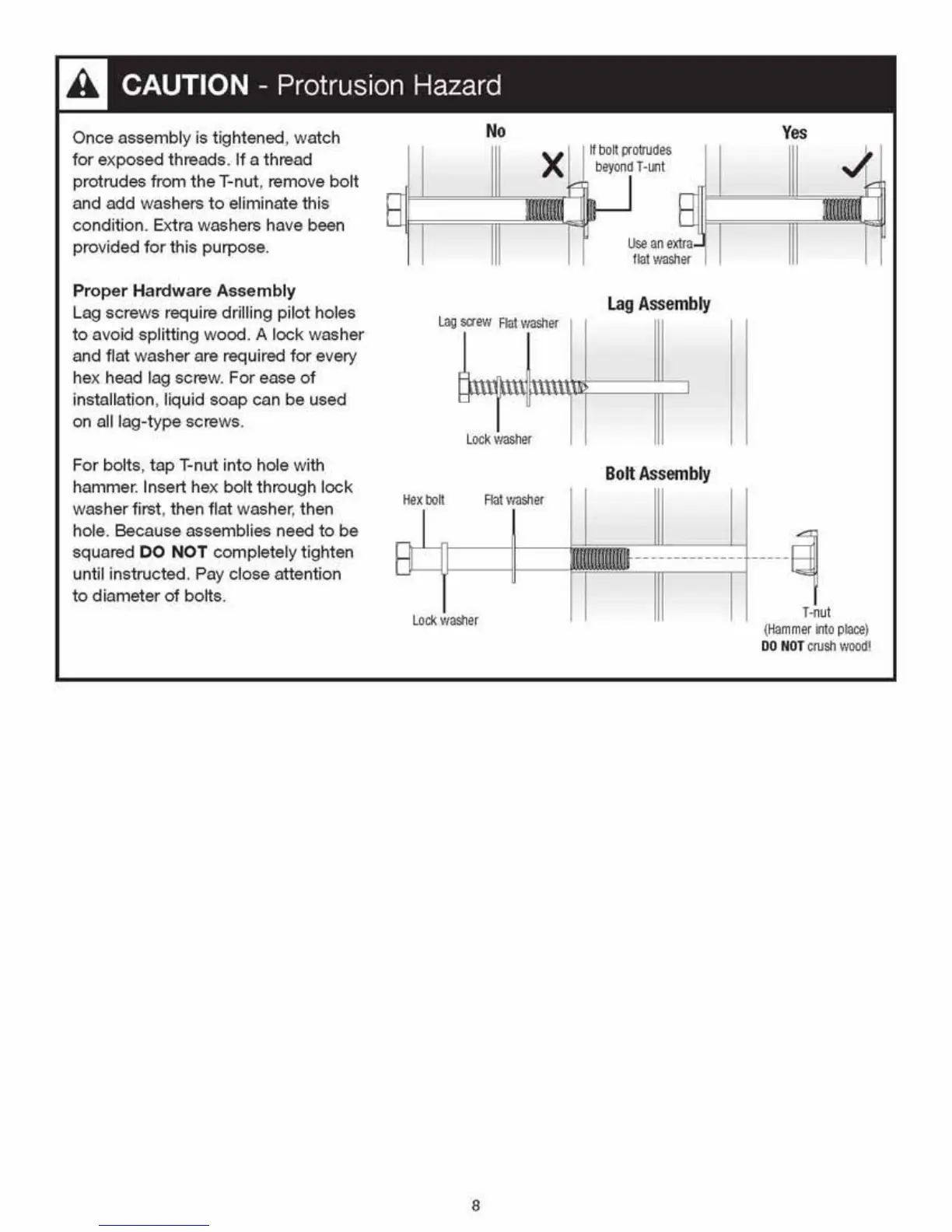 protrudes from the T-nut, remove