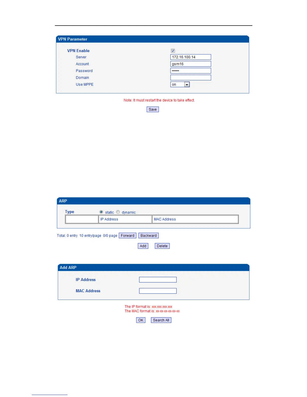 Figure 4-5-5 Add ARP