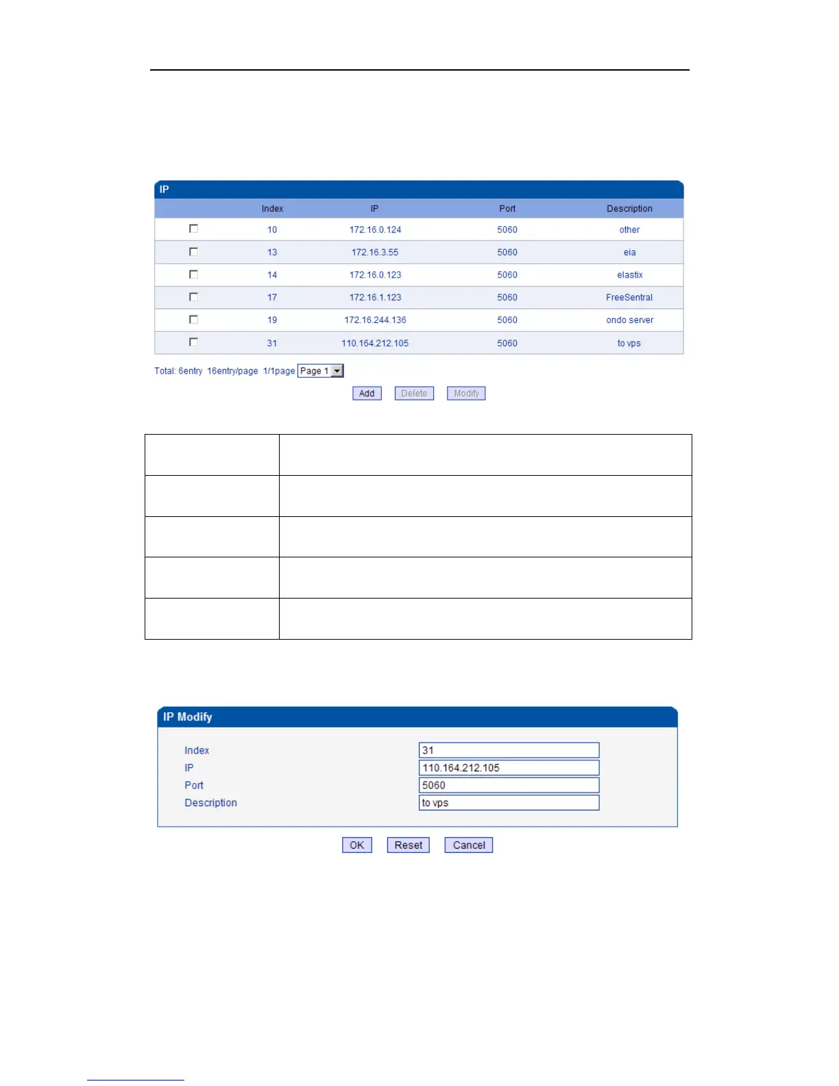 To add a remote IP of Softswitch, set “index” to “31”, SIP port number “5060”