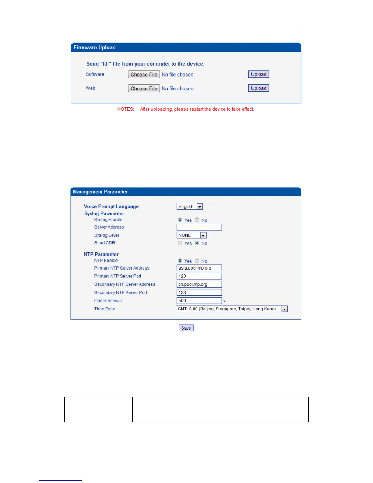 Figure 4-14-2 Management Parameter