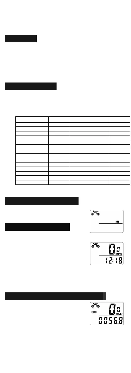 - SETTING TYRE CIRCUMFERENCE : (0mm ~
