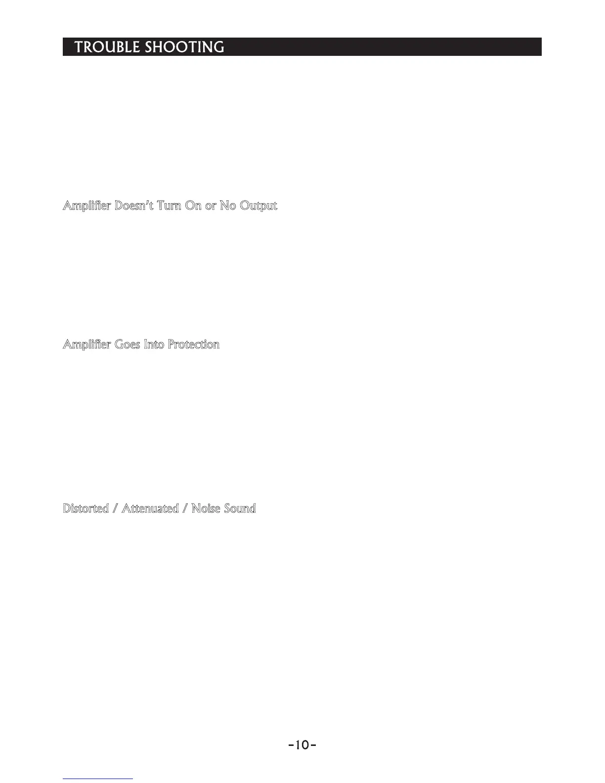 * Check the input signal and input signal cables to make sure signal is present at the amplifier inputs