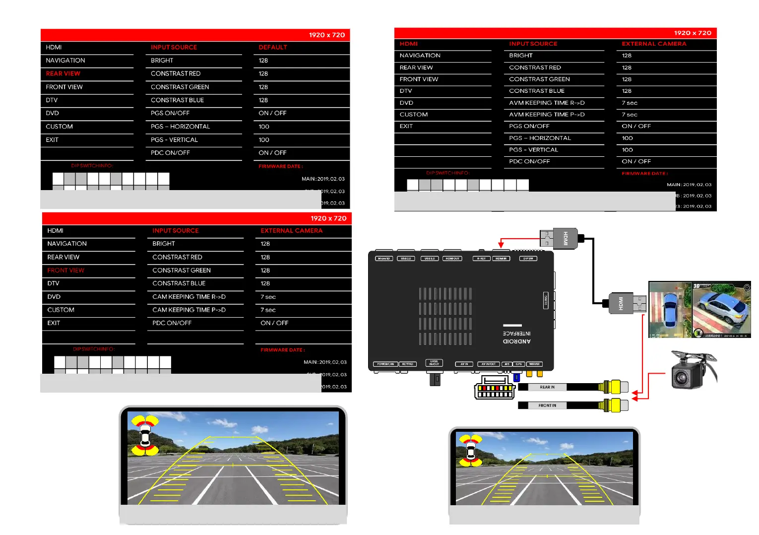 CONNECTION REAR CAM / FRONT CAM / 360 AVM