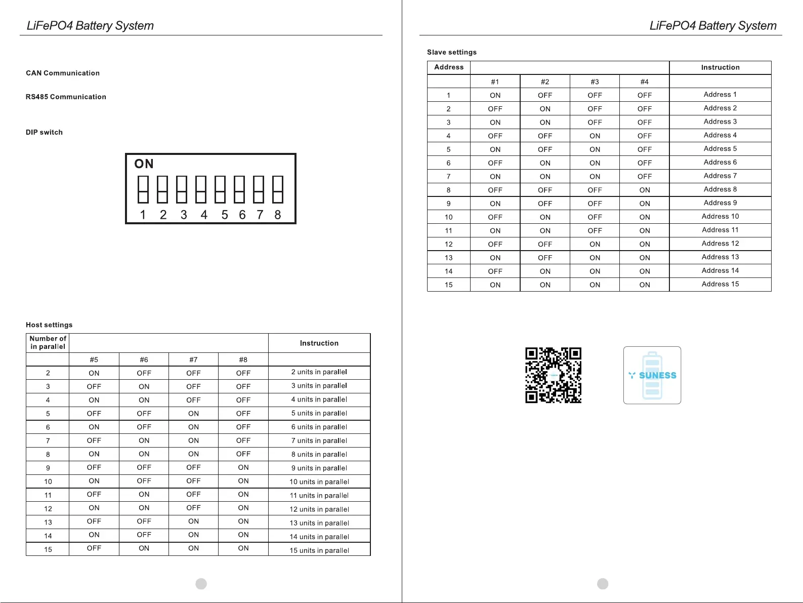 Slave settings: bit 1 to bit 4 are set according to the device order, slave address range from 1 to 15.Bit 5 to bit 8