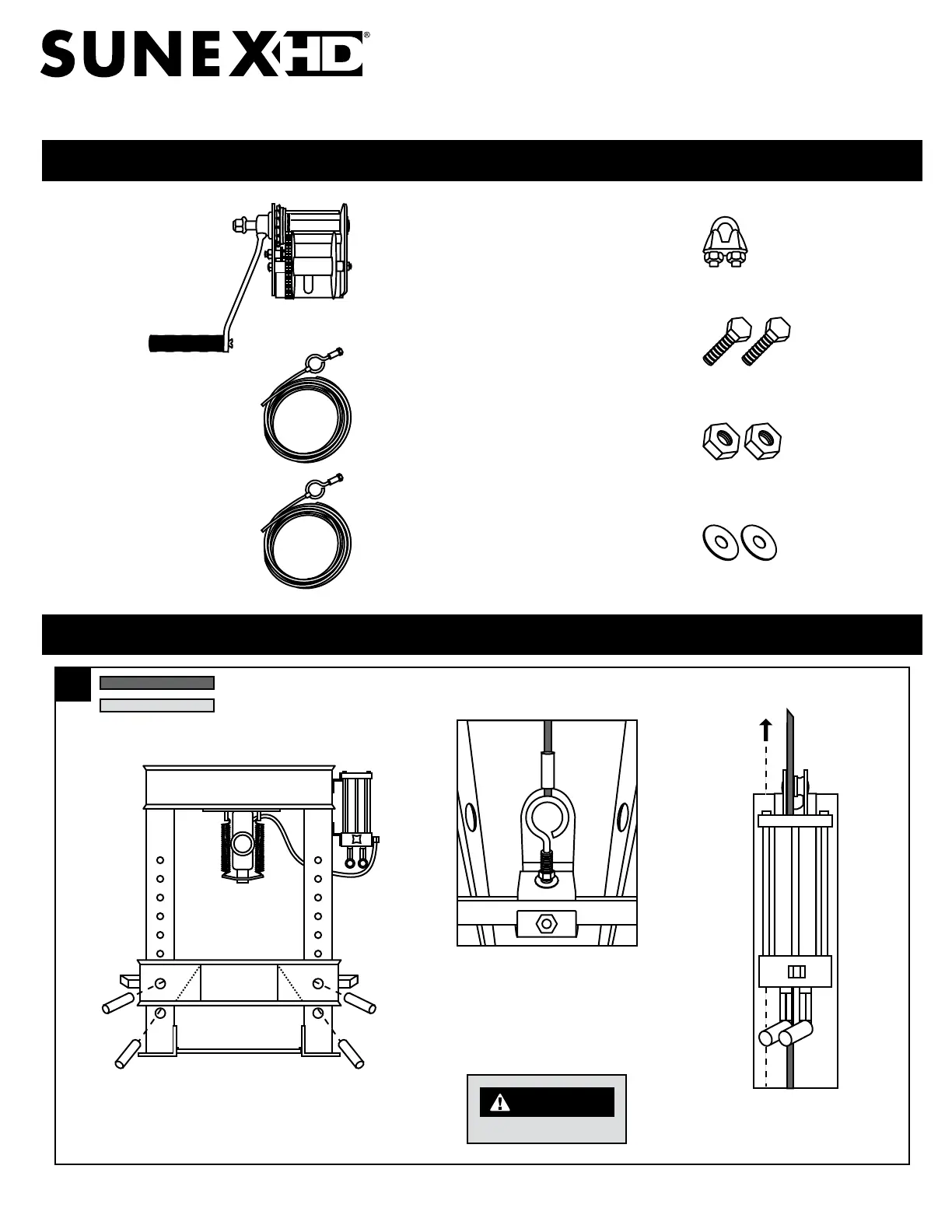 Sunex Part No. Total Height Inside Width Press Feet Length Bed Width Ram Stroke Pin Diameter PB Winch Sliding Head Press Plates Included