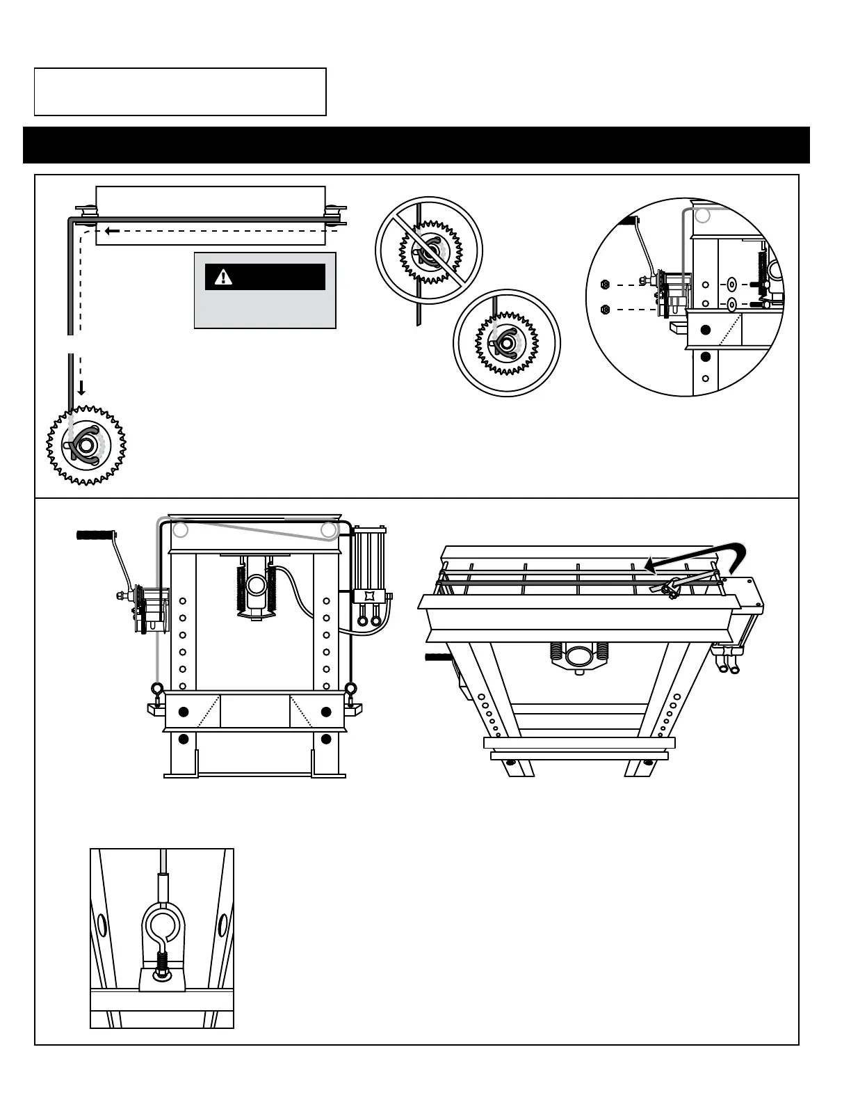 9. Turn eye hooks to adjust and level press bed. Once bed is level,