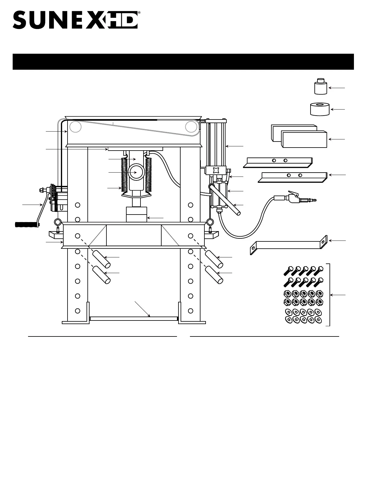 Note: Position press feet on each side of the press.