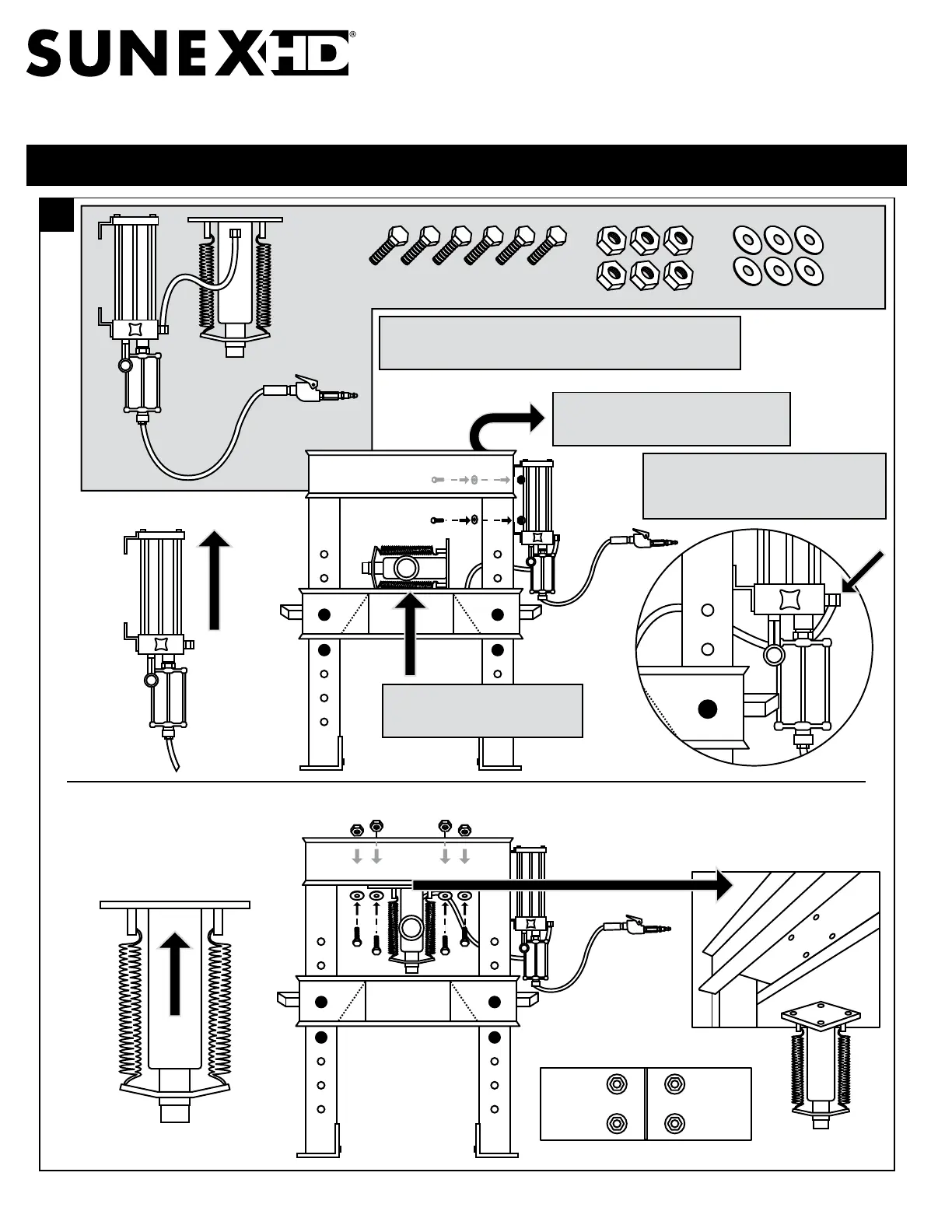 9. Turn eye hooks to adjust and level press bed. Once bed is level,
