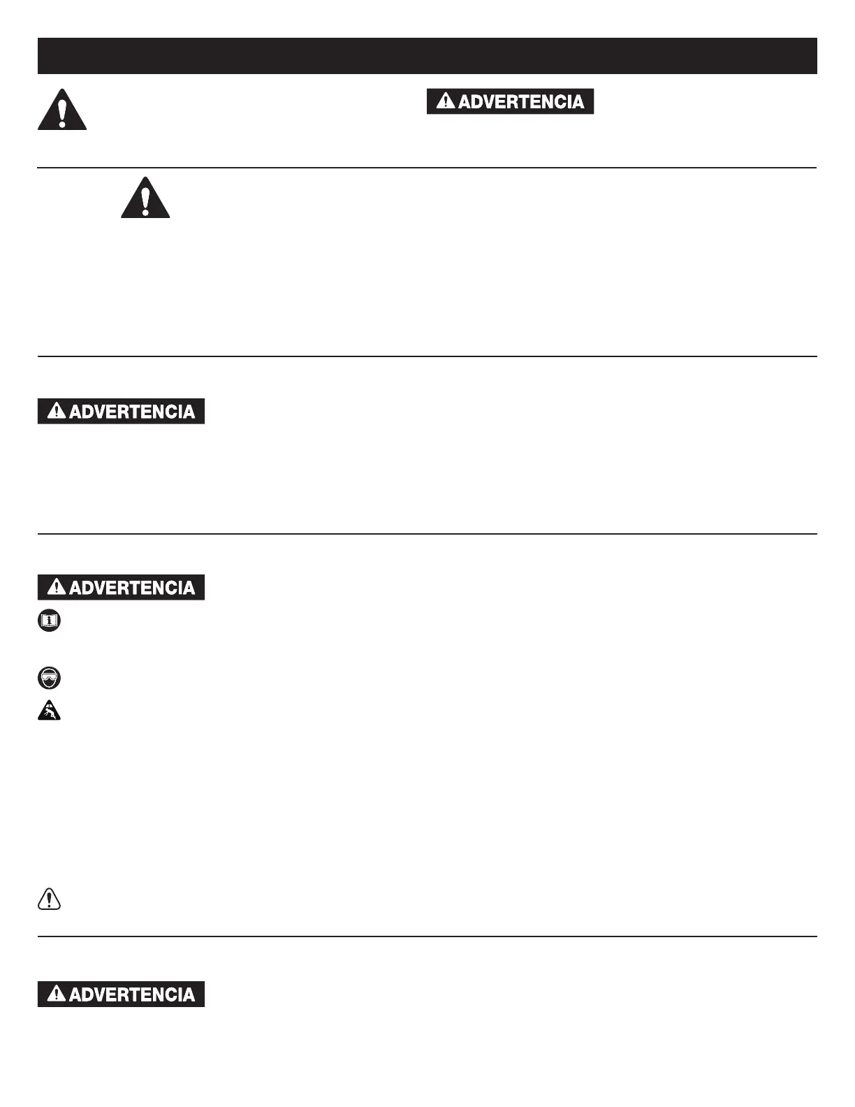• Use protección para los ojos que cumpla con las normas ANSI Z87.1 y OSHA (usuarios y espectadores).