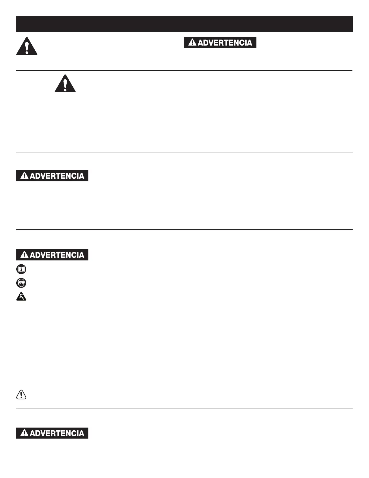 • Use protección para los ojos que cumpla con las normas ANSI Z87.1 y OSHA (usuarios y espectadores).