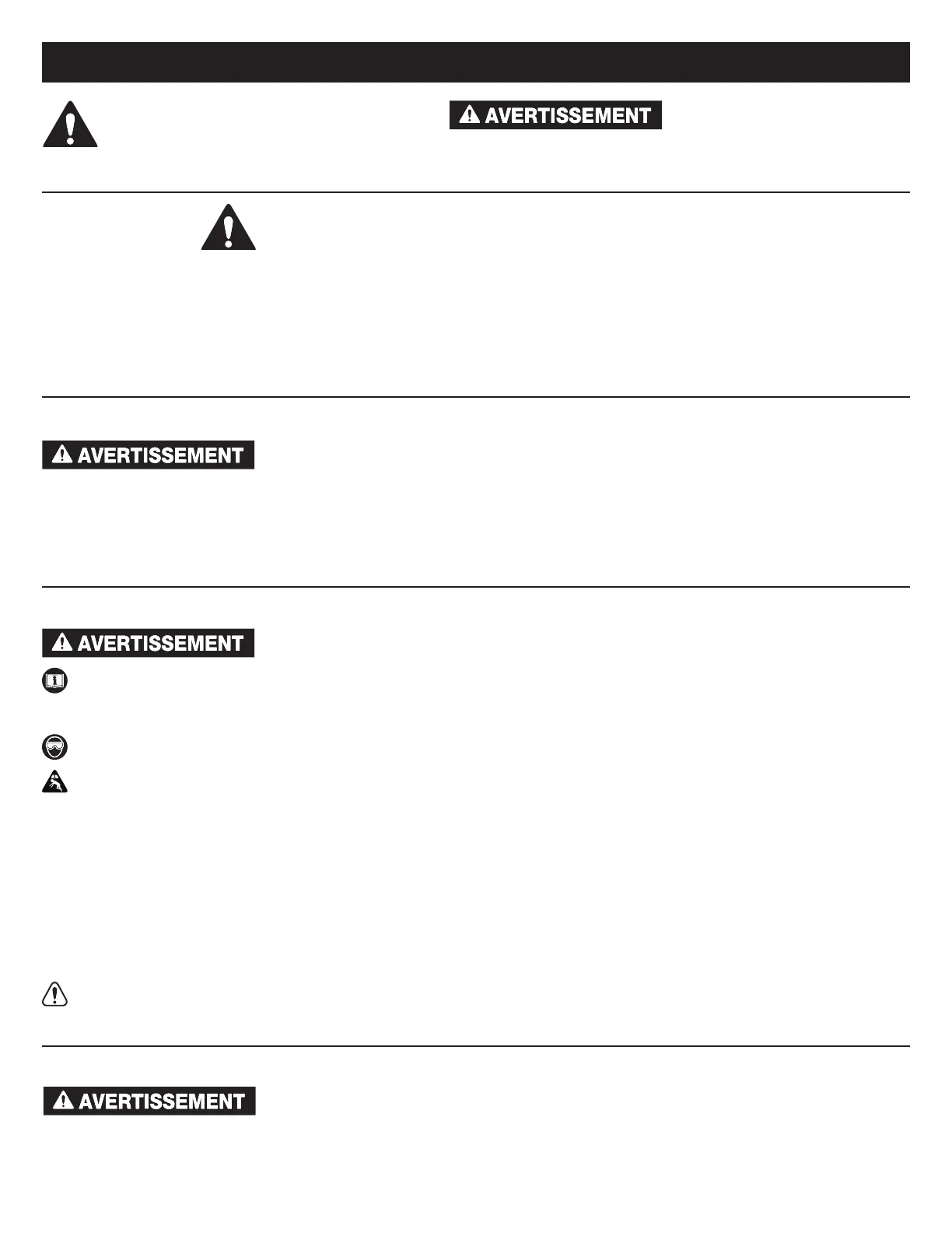 • Portez une protection oculaire qui répond aux normes ANSI Z87.1 et de l'OSHA (utilisateur et personnes à proximité).