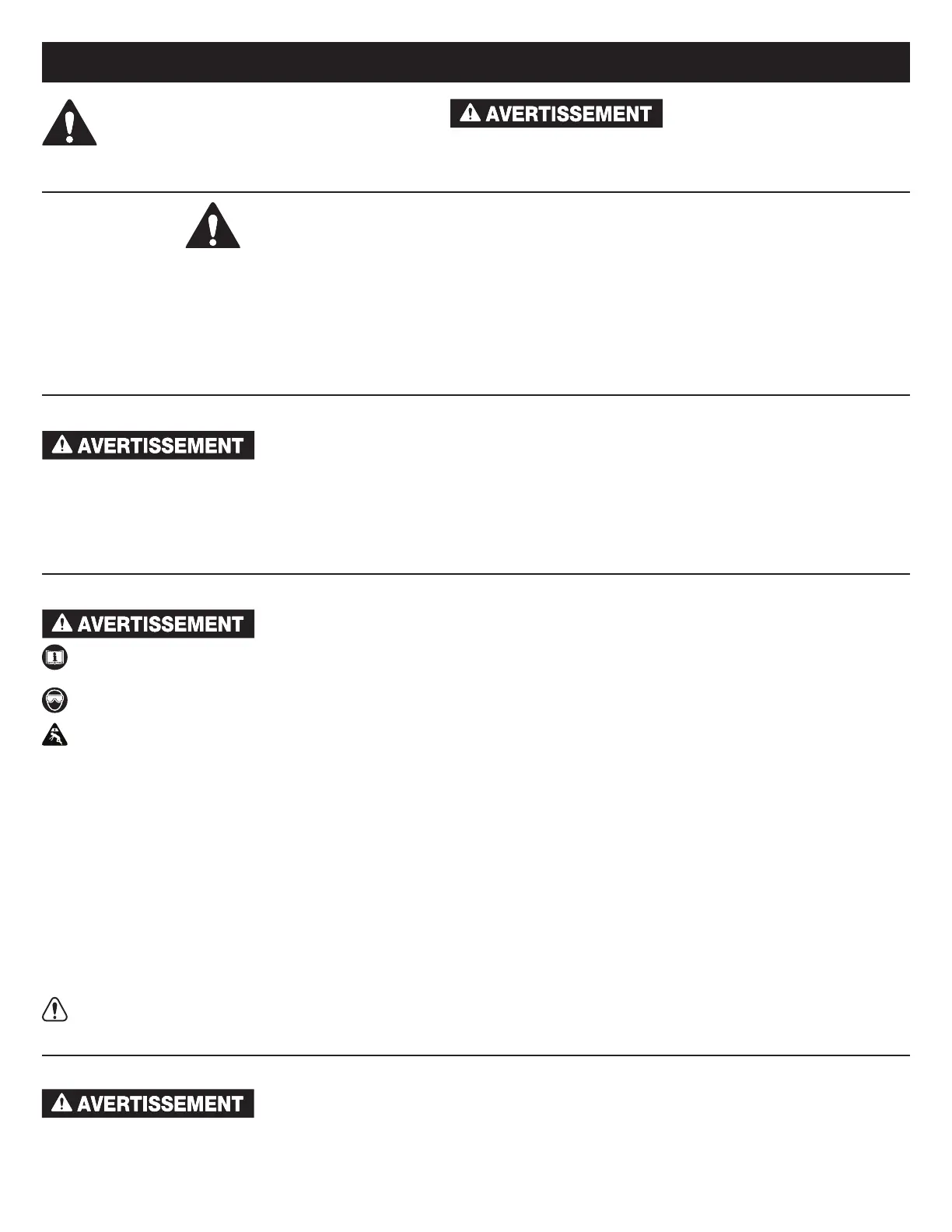 • Portez une protection oculaire qui répond aux normes ANSI Z87.1 et de l'OSHA (utilisateur et personnes à proximité).