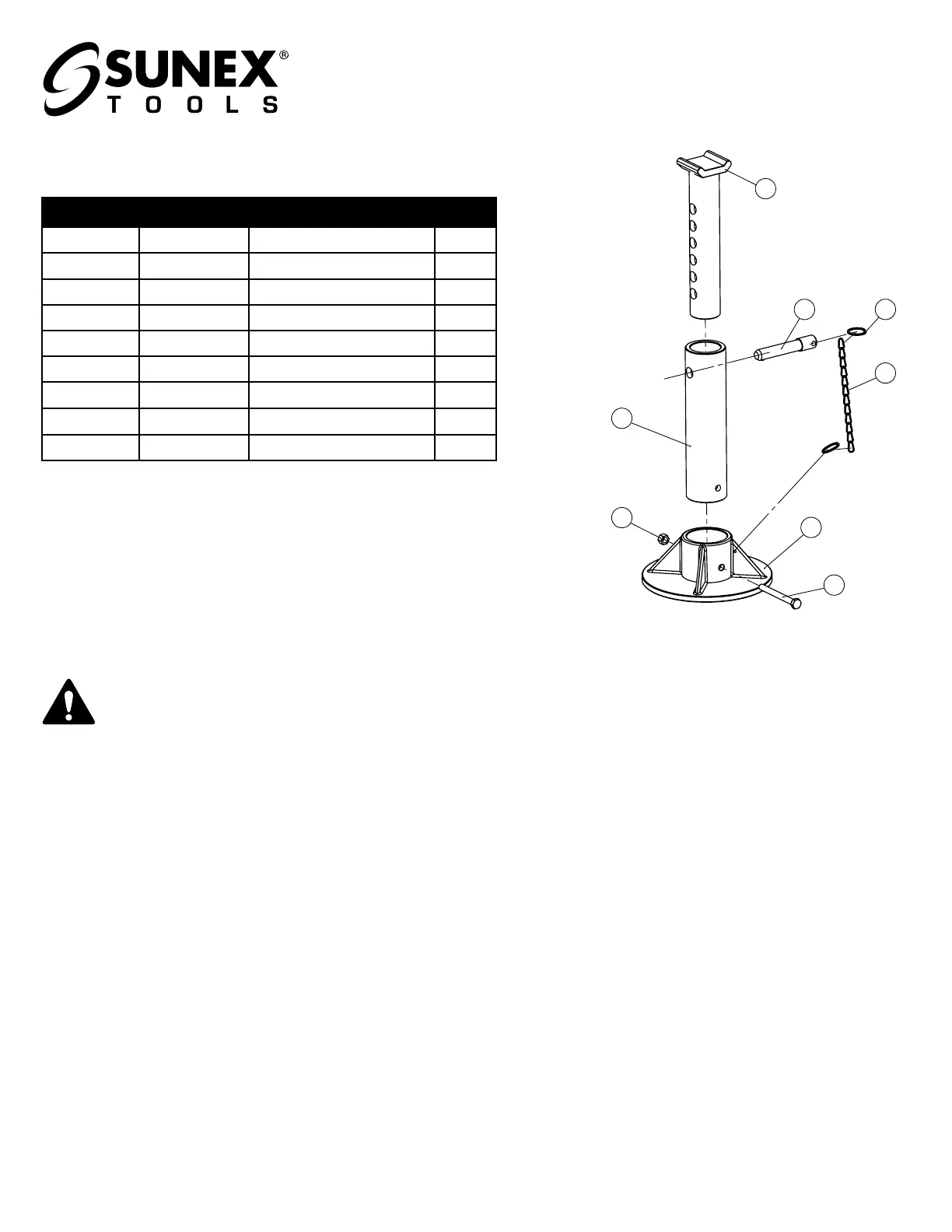 surfaces of the stand. Contact Sunex for a replacement label if your stand's label is not readable.