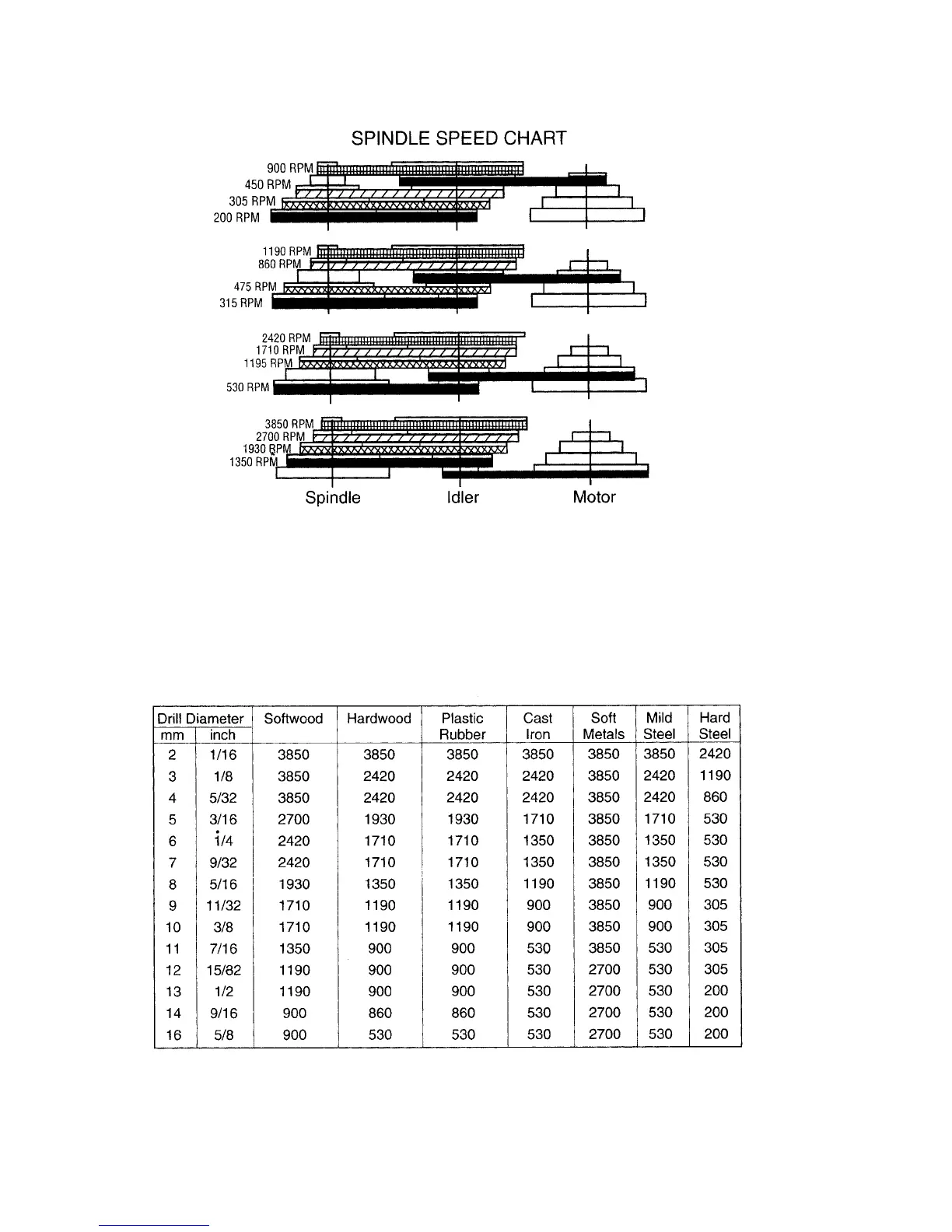 Sunex Tools 5000A - Spindle Speed and Material Selection; Spindle Speed Chart