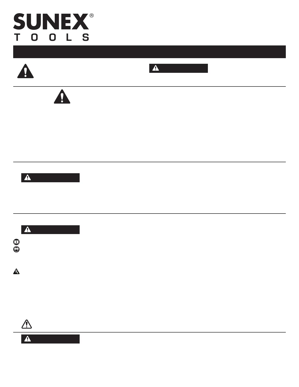 • Se deben usar solo accesorios y/o adaptadores provistos por Sunex Tools