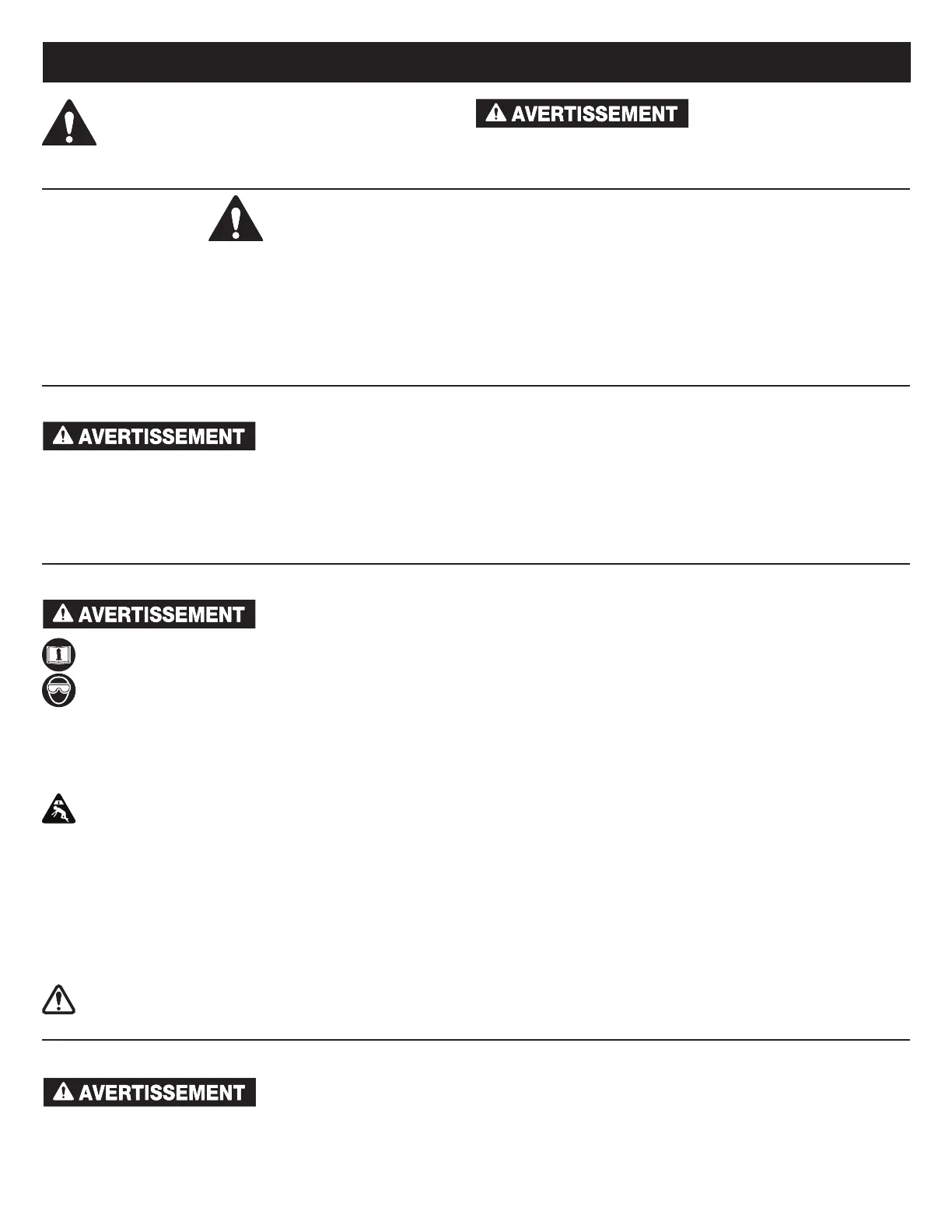 • Le non-respect de ces directives peut provoquer des dommages matériels ou des blessures graves ou mortelles.