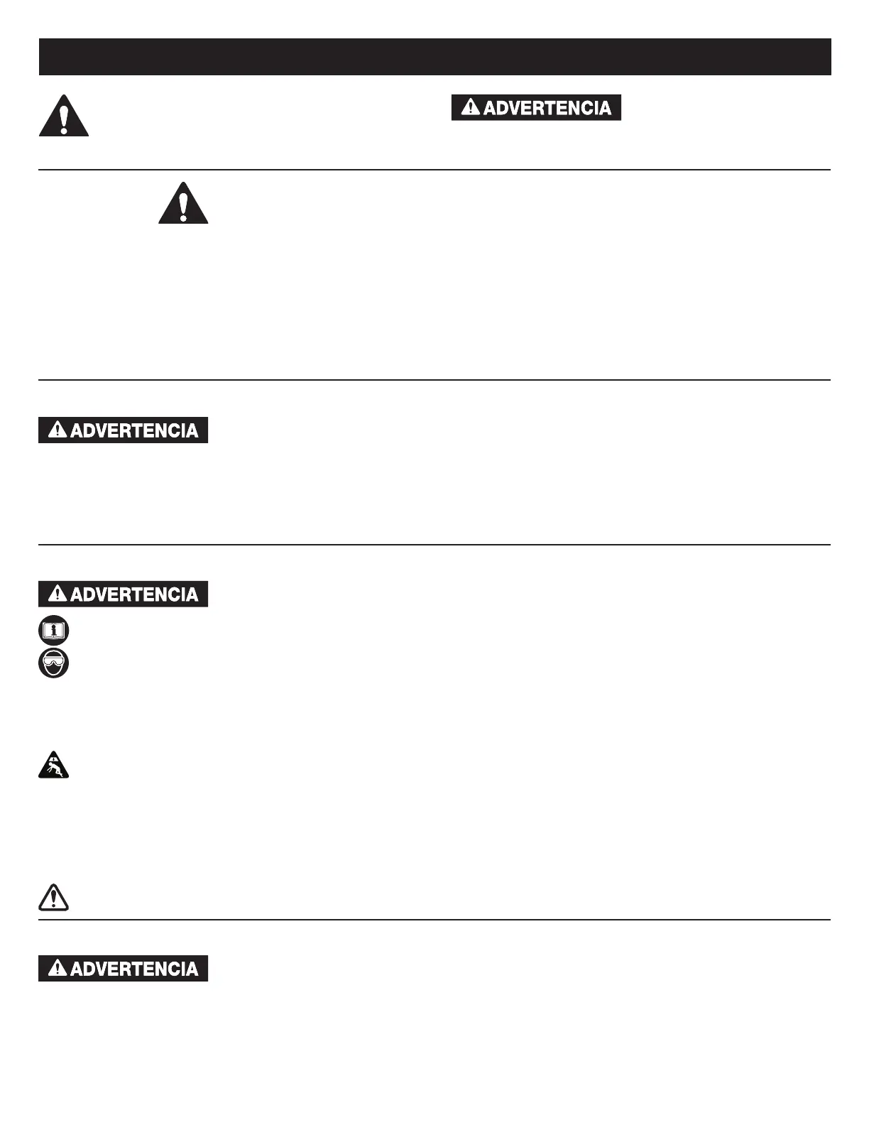 • Hacer caso omiso a estas advertencias puede ocasionar lesiones personales serias o fatales y/o daños a la propiedad.