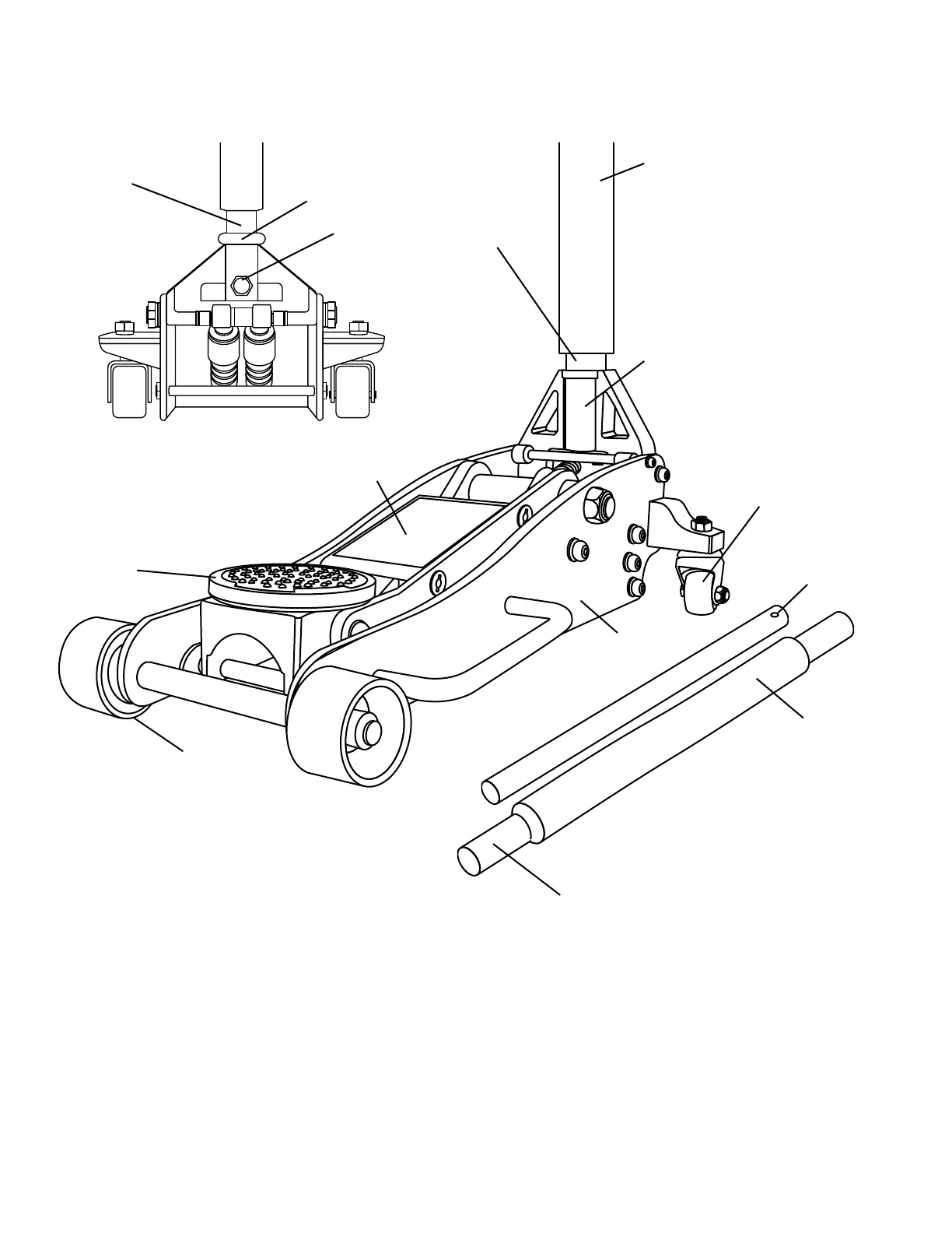 Visual inspection should be made before each use of the jack, checking for leaking hydraulic uid and damaged, loose or missing parts.