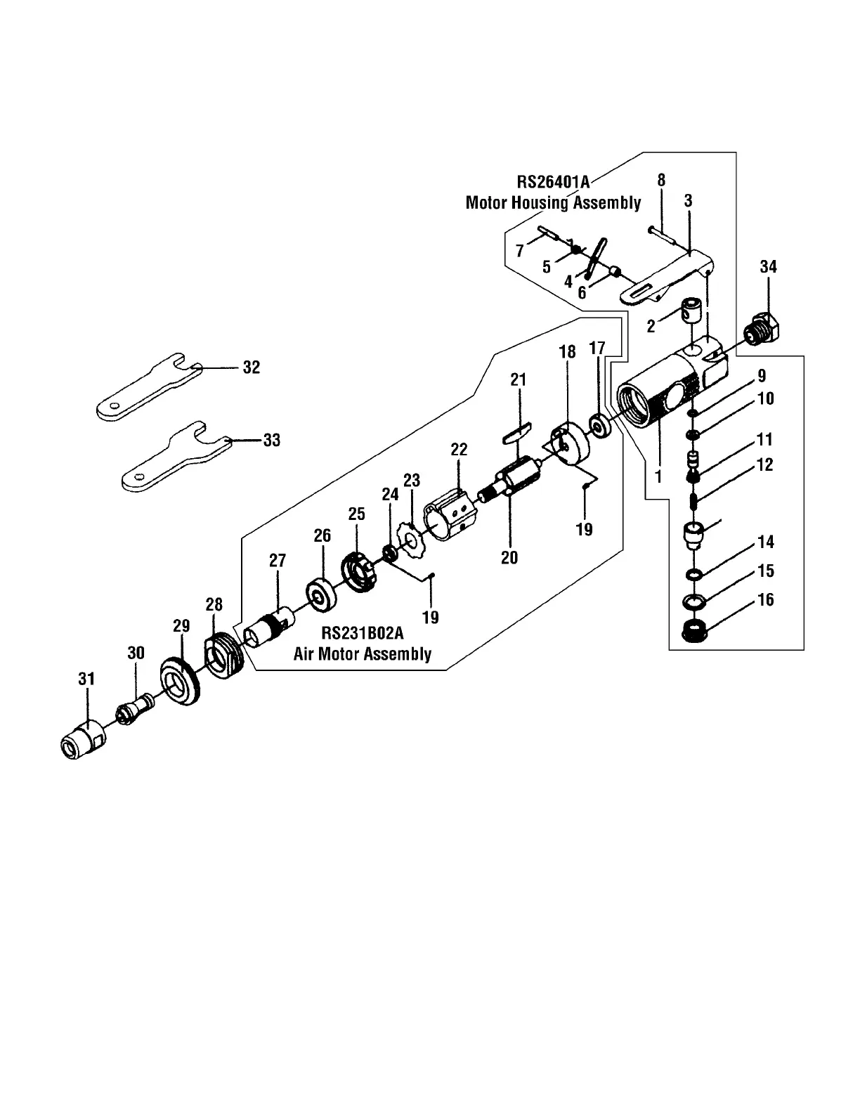 RS231B02A Air Motor Assembly (includes ref. # 17-27)