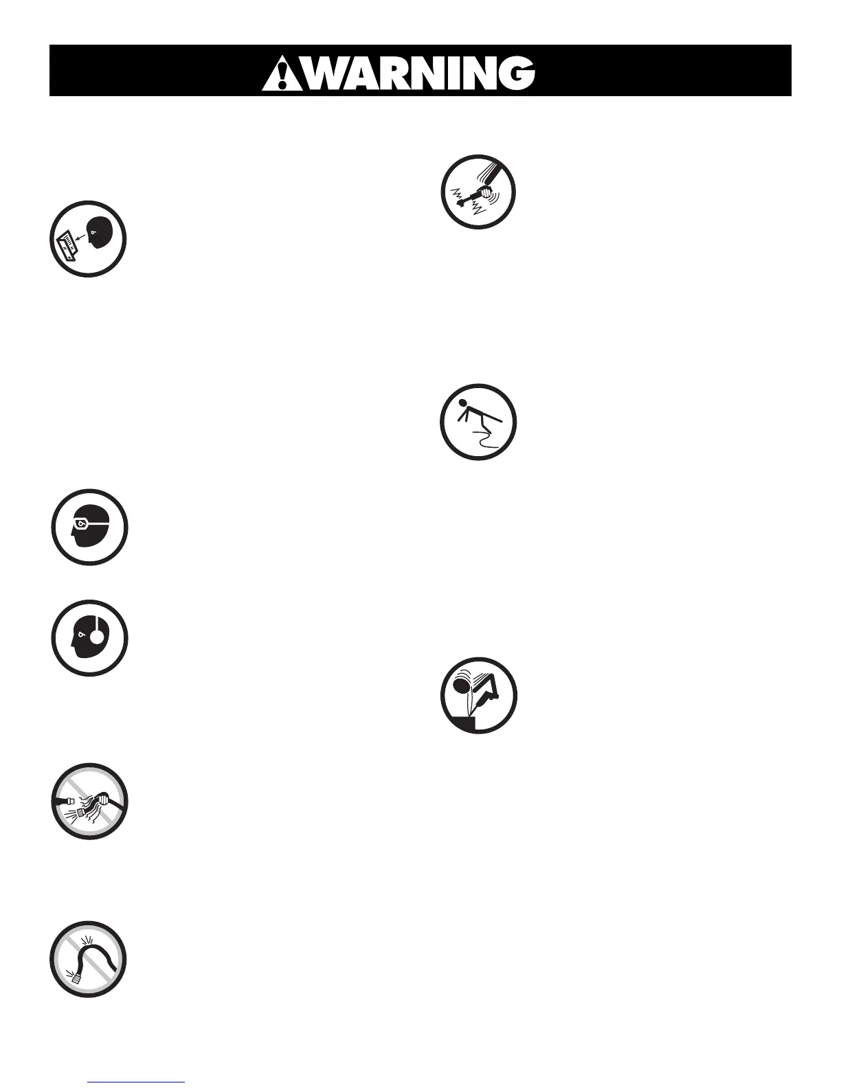 • Do not carry tool by the hose. Protect the