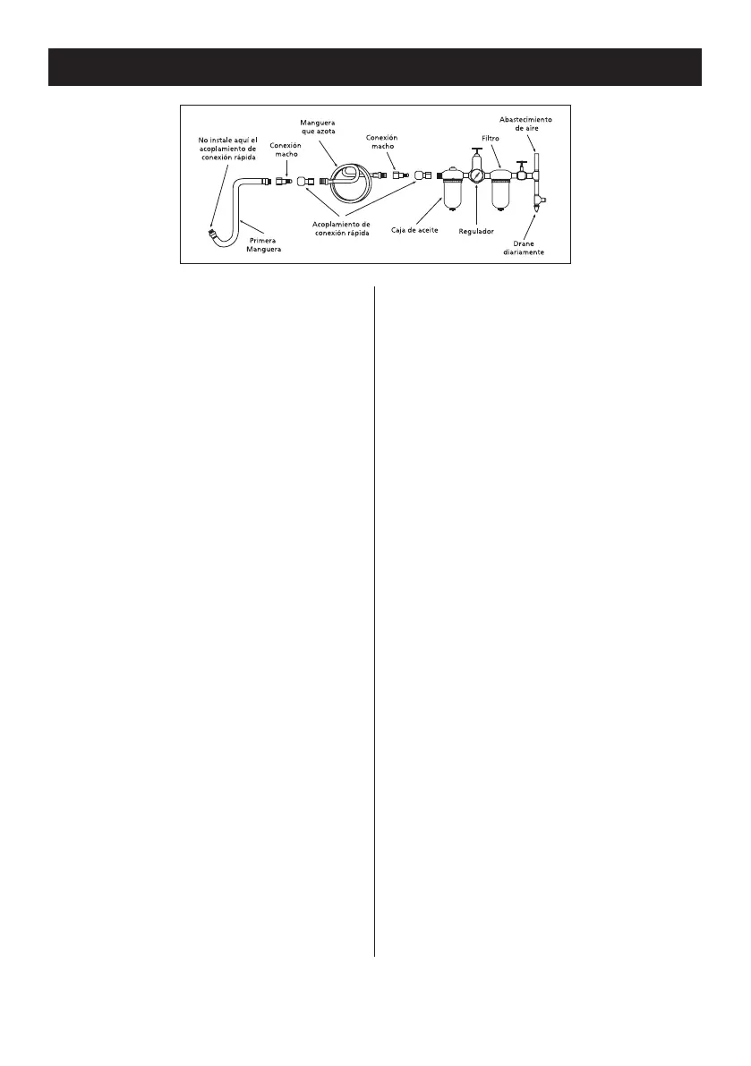 corrosivos y/o el agua en la tubería de aire dañarán la herramienta.