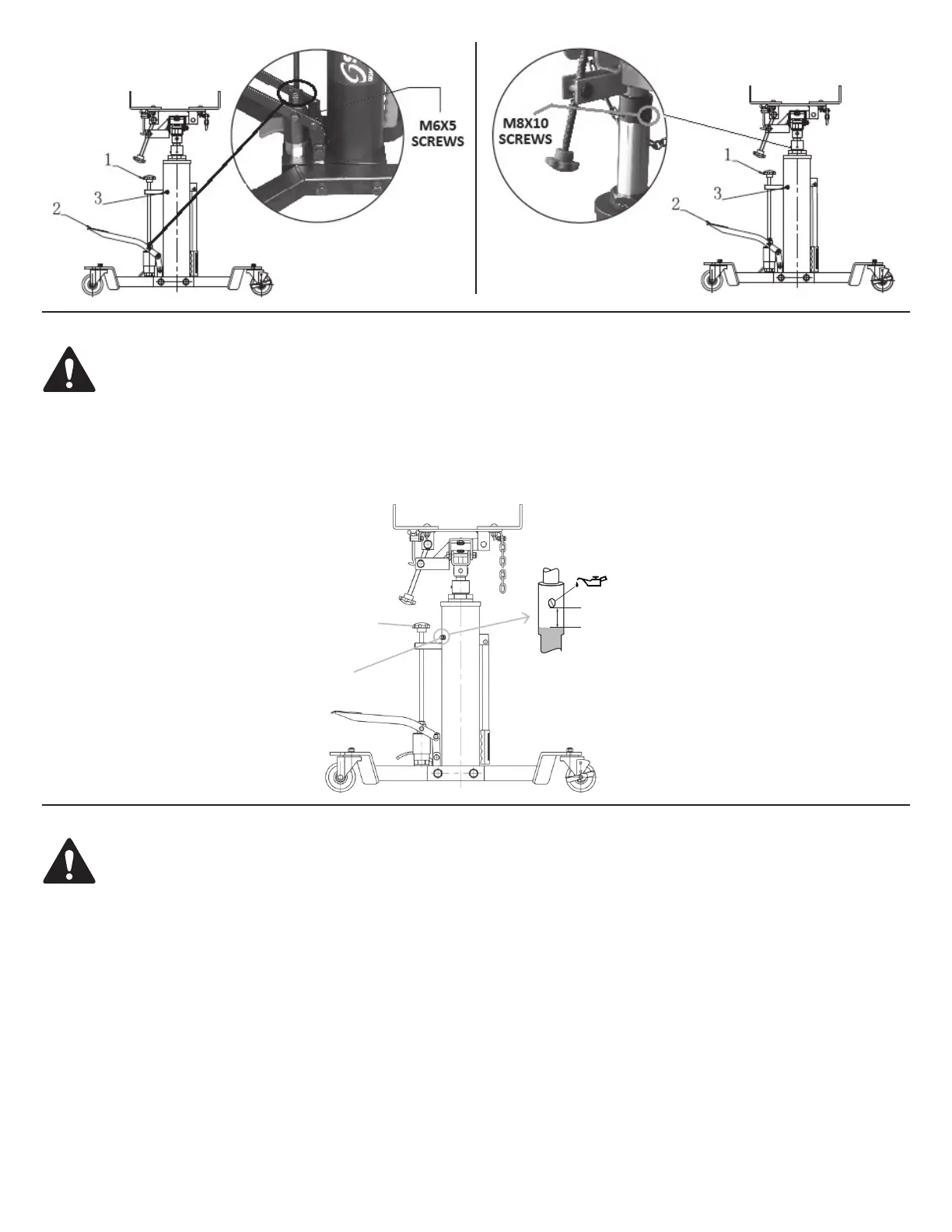 saddle to a height very close to the center of balance point of the transmission oil pan but do not touch the transmission.