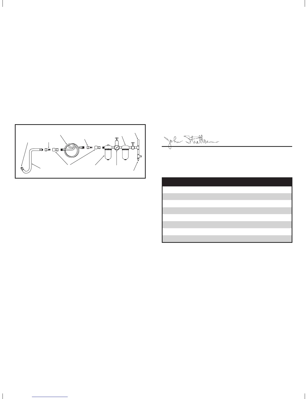 air hose run (over 25 feet). Minimum hose diameter should