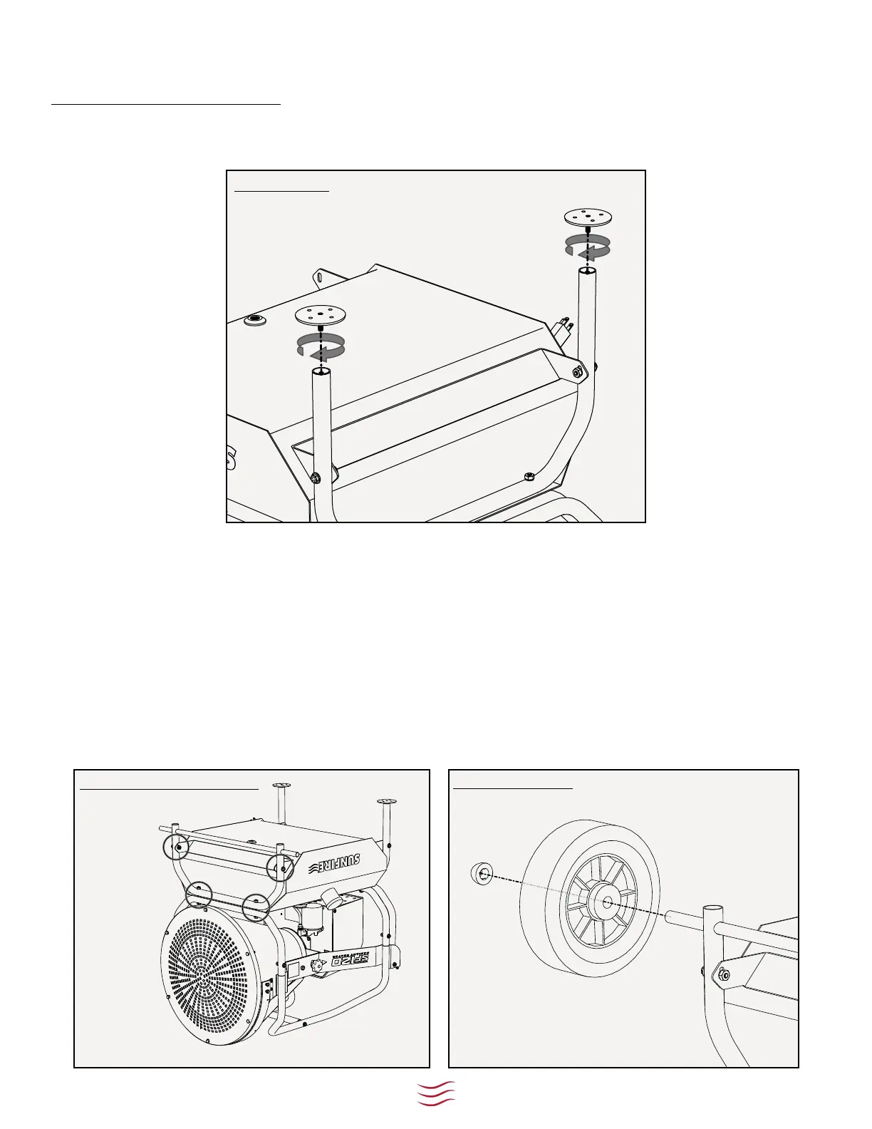 5. After attaching the axle frame to the heater assembly, feed the raised hub of the wheels onto the axle